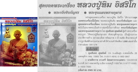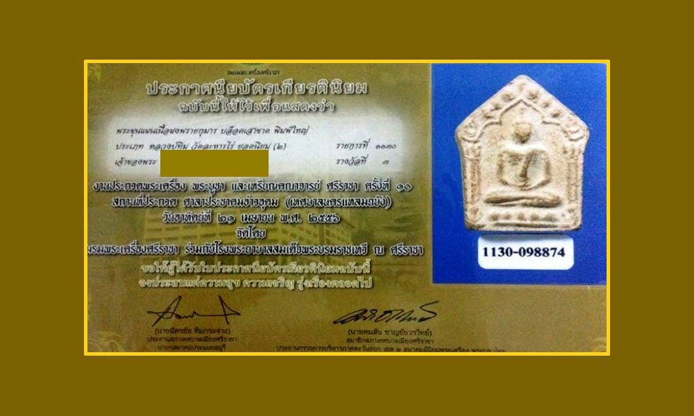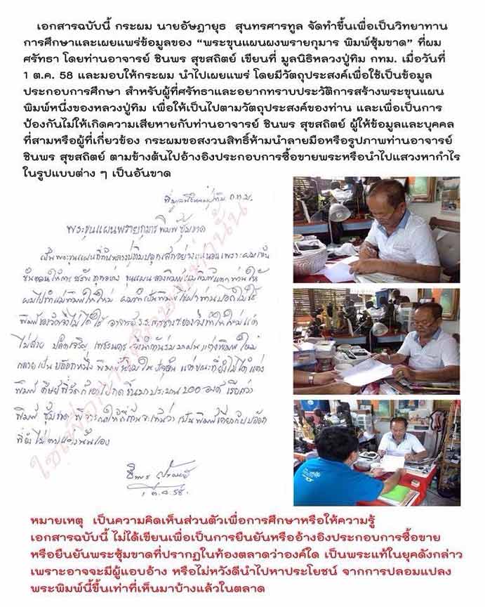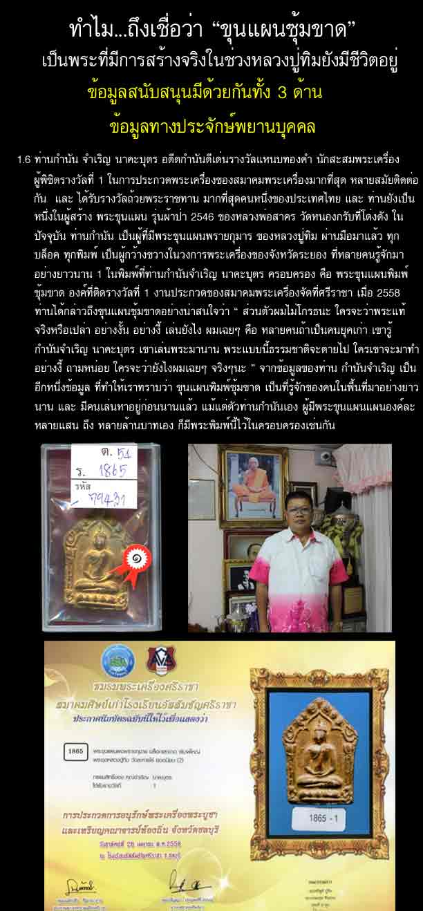 - ดังนั้นทางเว็บไซต์ฯจึงขอให้ท่านสมาชิกทุกท่าน ** งด ** ตั้งประมูลและเสนอขายพระขุนแผน ลป.ทิม วัดละหารไร่ พิมพ์ซุ้มขาด เนื้อผงพรายกุมาร ปี 2517 จ.ระยอง ในเว็บไซต์ฯจนกว่าจะมีข้อมูลสรุปที่ชัดเจน ซึ่งจะได้ประกาศให้ทราบโดยทั่วกันในคราวต่อไป