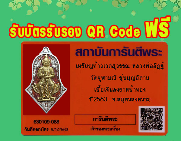 พร้อมรับบัตรรับรอง QR Code มูลค่า 500 บาท ** ฟรี ** ทุกองค์ที่จอง