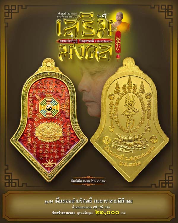 ลำดับที่ 2.1 เนื้อทองคำบริสุทธิ์ ลงยาราชาวดีสีแดง บูชา 21,000 บาท