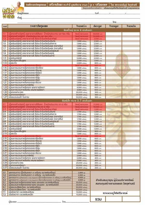 ( ท่านที่ประสงค์ให้จัดส่งพระเครื่องทางไปรษณีย์ กรุณาเพิ่มค่าจัดส่งครั้งละ 100 บาท ต่อทุกๆ 20 องค์ )