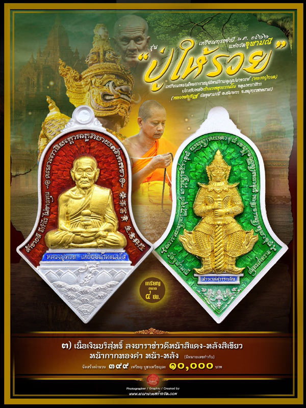 3. เนื้อเงินบริสุทธิ์ ลงยาราชาวดีหน้าสีแดงหน้า-หลังสีเขียว หน้ากากทองคำหน้า-หลัง