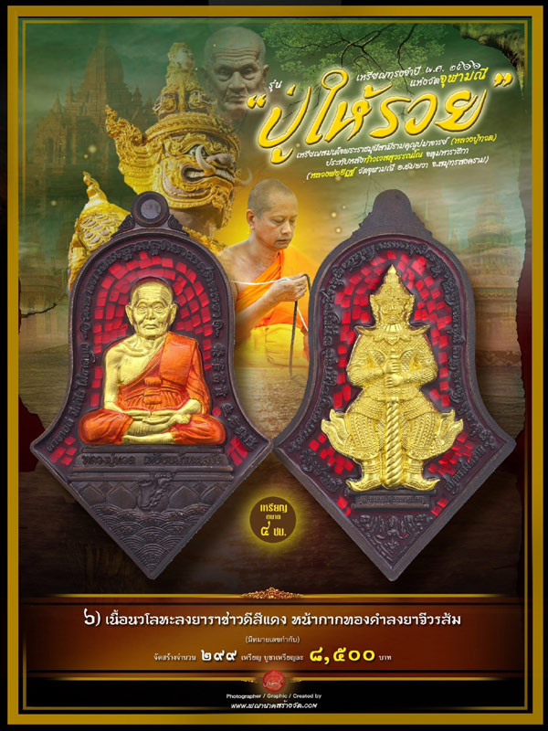 6. เนื้อนวโลหะลงยาราชาวดีสีแดง หน้ากากทองคำลงยาจีวรส้ม