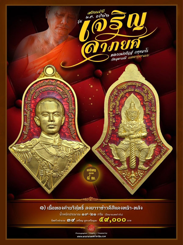 รายการที่ 1 เนื้อทองคำบริสุทธิ์ ลงยาราชาวดีสีแดงหน้า-หลัง