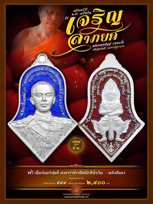 รายการที่ 6 เนื้อเงินบริสุทธิ์ ลงยาราชาวดีสีแดงหน้า-หลัง