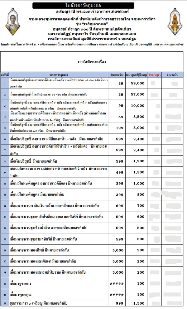 ( ท่านที่ประสงค์ให้จัดส่งพระเครื่องทางไปรษณีย์ กรุณาเพิ่มค่าจัดส่งครั้งละ 100 บาท ต่อทุกๆ 20 องค์ )