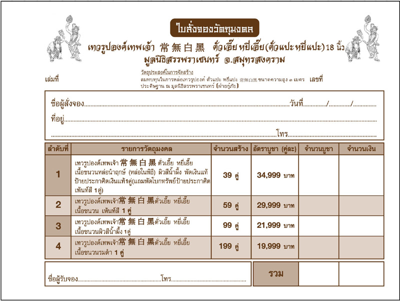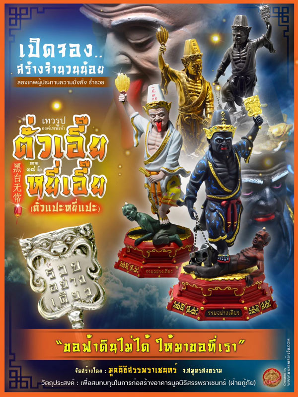 วัตถุประสงค์ สมทบทุนในการหล่อเทวรูปองค์ ตั่วแปะ หยี่แปะ 常無白黑 ขนาดความสูง ๓ เมตร ประดิษฐานณ มูลนิธิสรรพราเชนทร์ (ฝ่ายกู้ภัย) 💥
