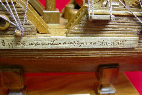 ... รุ่นแรก จัดสร้างเพียง 999 ลำ ขนาดลำเรือ กว้าง 11 ซม. ยาว 55 ซม. สูง 45 ซม. เรือทุกลำมีการลงอักขระเรียกทรัพย์ พร้อมยิงเลเซอร์ตัวเลขทุกลำ เรือทำด้วยไม้สัก ครบสูตรตามหลักการ ปลุกเสกโดย พระศีลมงคล (หลวงพ่อทอง) วัดสำเภาเชย โดยมีวัตถุประสงค์ เงินรายได้หลังหักค่าใช้จ่าย จะมอบให้กับหลวงพ่อทอง ใช้ในกิจของสงฆ์ และเพื่อหลวงพ่อทองมอบเงิน ทุนการแก่เด็กเรียนดี แต่ขาดแคลนทุนทรัพย์ ในพื้นที่ จ.ปัตตานี