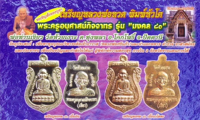 เชิญสั่งจอง เหรียญหลวงปู่ทวด พ่อท่านเขียว วัดห้วยเงาะ รุ่น มงคล 80 พิมพ์หัวโต