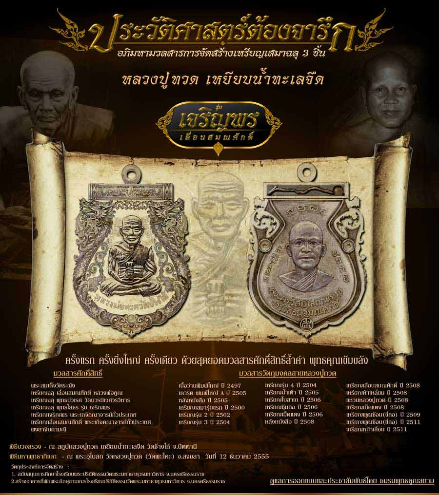 ขอเชิญร่วมจองเหรียญหลวงปู่ทวด รุ่น เจริญพร เลื่อนสมณศักดิ์
