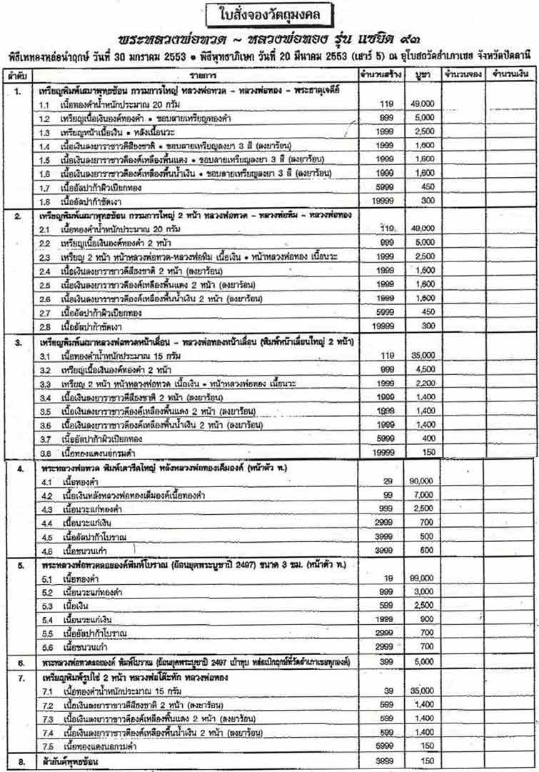 กำหนดรับวัตถุมงคลประมาณต้นเดือนเมษายน 2553