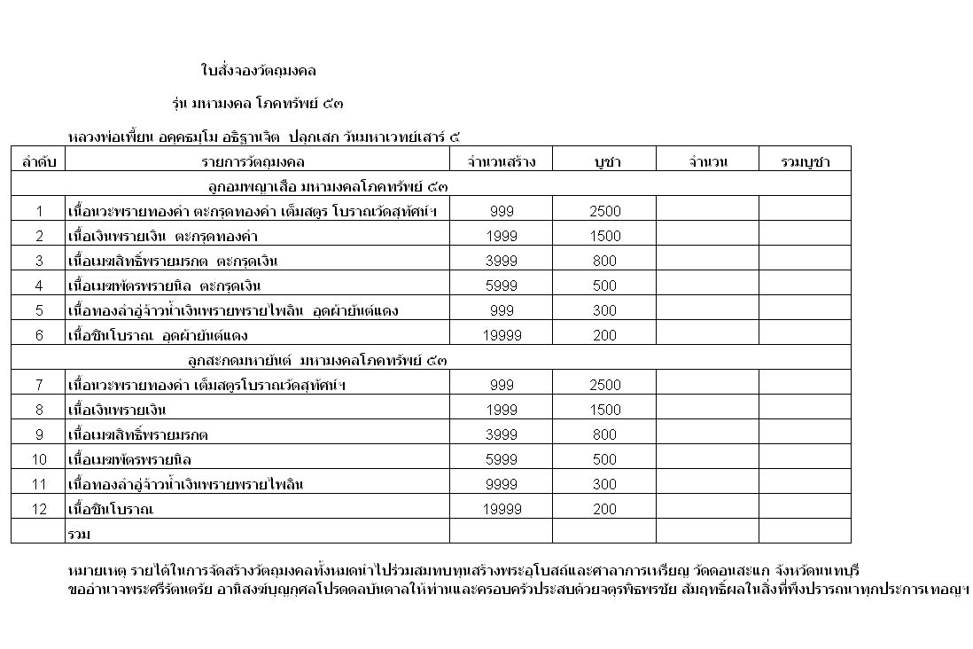 ท่านที่ประสงค์ให้จัดส่งใบจอง และพระทางไปรษณีย์ กรุณาเพิ่มค่าจัดส่งครั้งละ 50 บาท