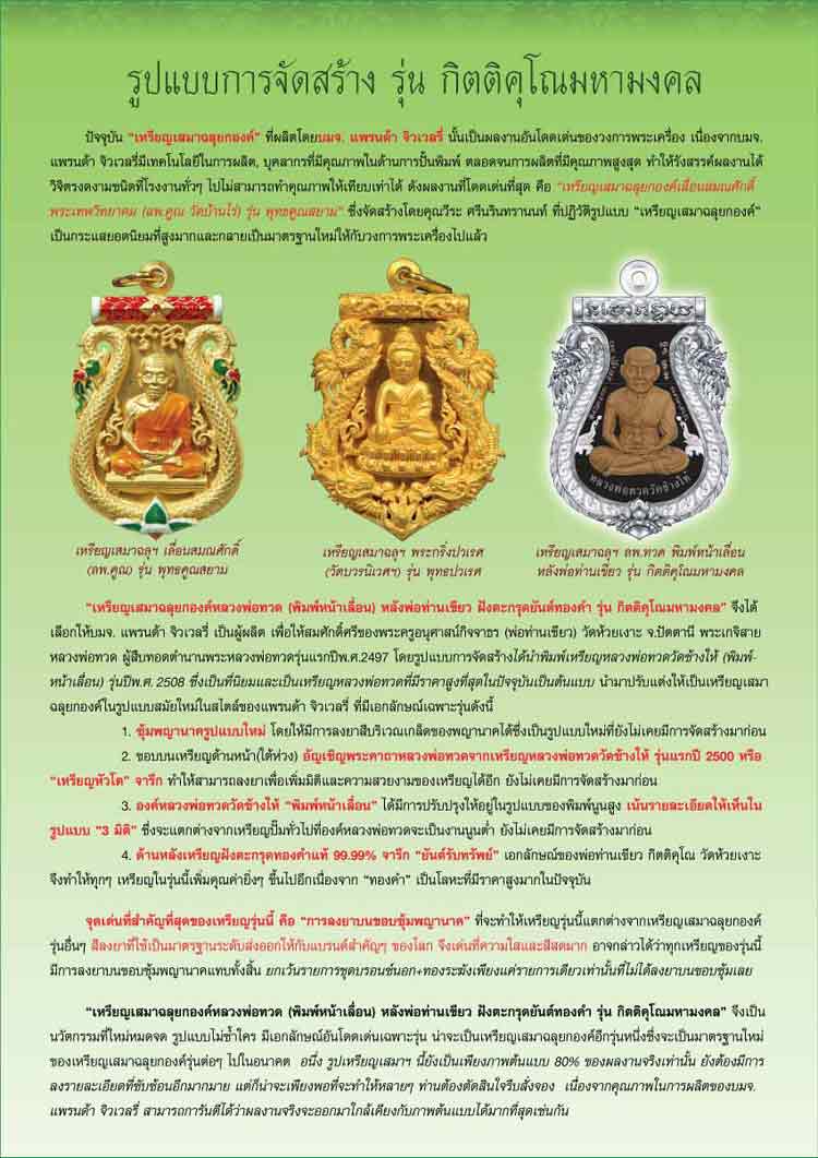 หน้าที่ 5 รูปแบบการจัดสร้างของเหรียญรุ่นนี้ หน้านี้เป็นหน้าที่สำคัญมากและควรอ่านทุกท่าน เนื่องจากเป็นหน้าที่รวบรวมจุดเด่นทั้งหมดของเหรียญรุ่นนี้ รวมถึงรายละเอียดต่างๆ มากมาย พร้อมทั้งเปรียบเทียบให้ดูถึงคุณภาพงานของแพรนด้า จิวเวลรี่ ระหว่างงานที่ออกมาแล้ว (รุ่น พุทธคูณสยาม, รุ่น พุทธปวเรศ) เทียบกับเหรียญรุ่นนี้ว่าถึงแม้จะเป็นภาพต้นแบบแต่คุณภาพของแพรนด้า จิวเวลรี่นันสามารถการันตีได้ว่าผลงานจริงที่ออกมาจะใกล้เคียงกับภาพต้นแบบมากที่สุดได้เช่นกัน