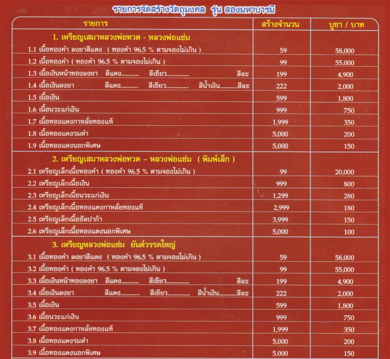 ท่านที่ประสงค์ให้จัดส่งใบจอง และพระเครื่องทางไปรษณีย์ กรุณาเพิ่มค่าจัดส่งครั้งละ 100