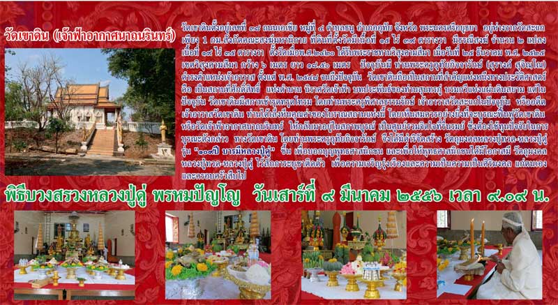 และ เพื่อสมทบทุนหล่อรูปเหมือนหลวงปู่ทวด-หลวงปู่ดู่ เพื่อประดิษฐานไว้ ณ ศาลาอเนกประสงค์ วัดเขาดิน ต.ธนู อ.อุทัย จ.พระนครศรีอยุธยา