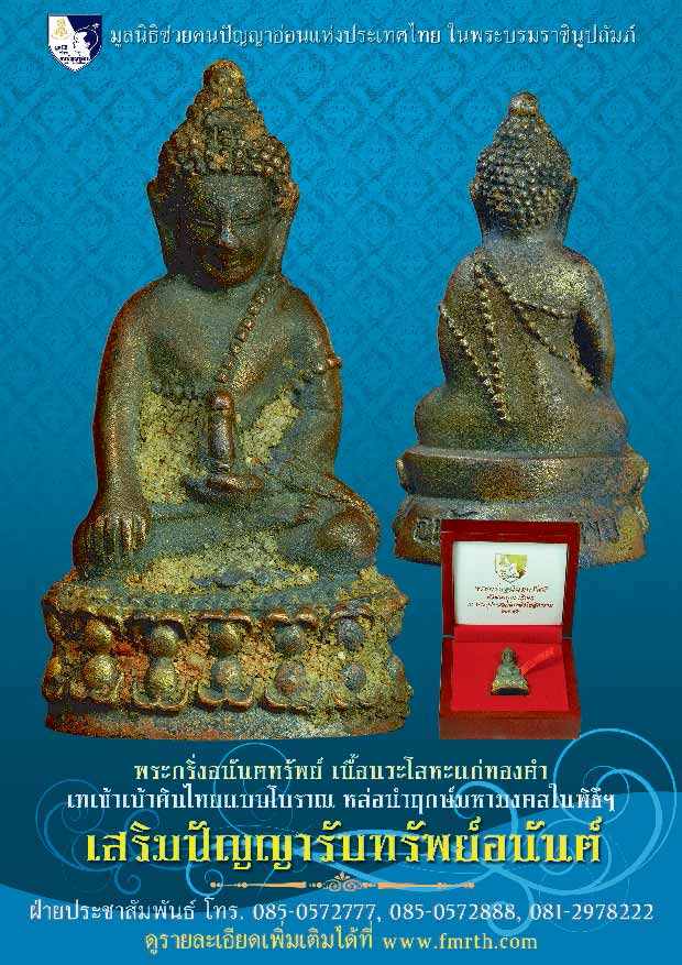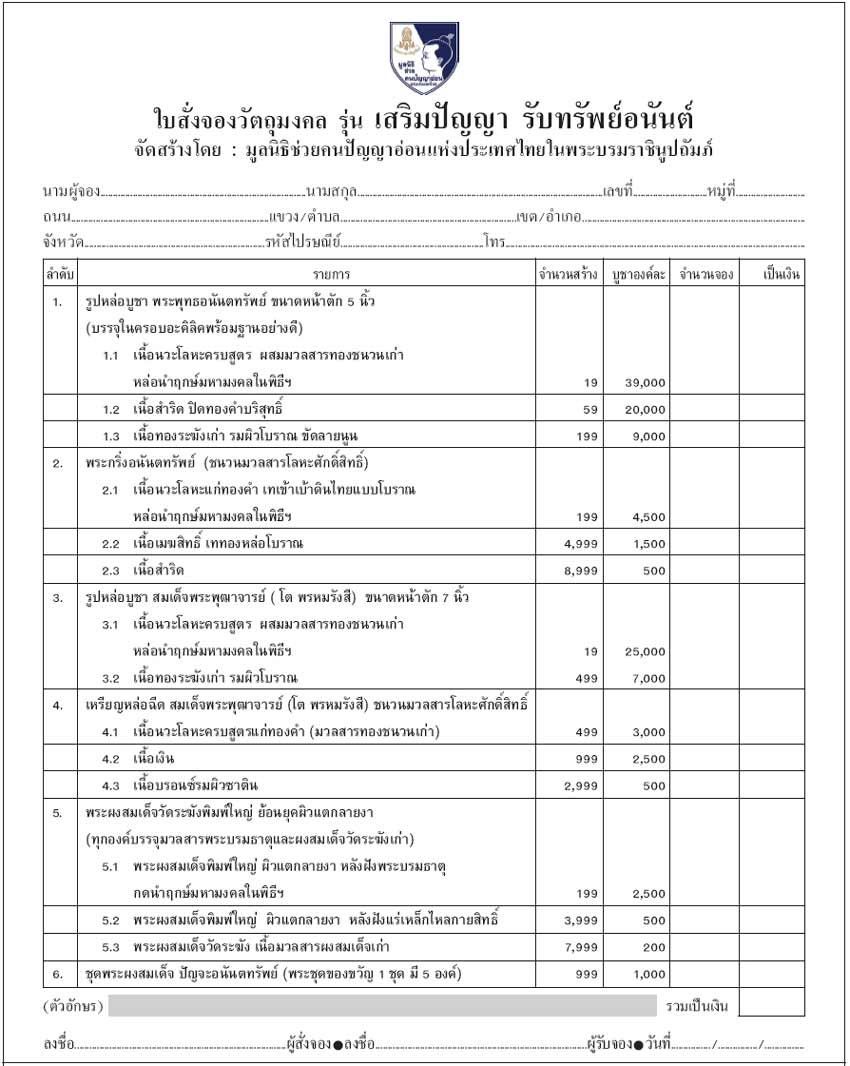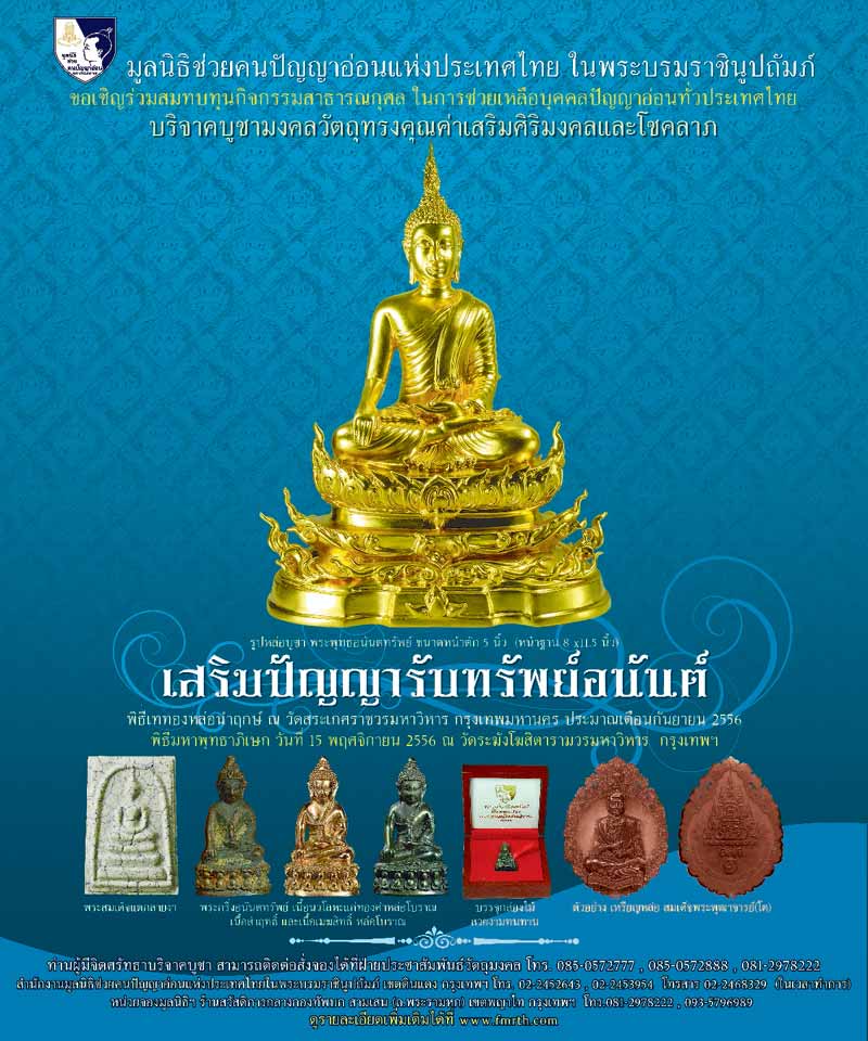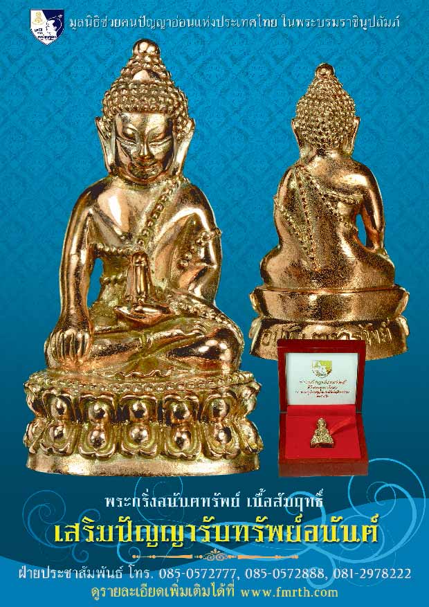 มูลนิธิช่วยคนปัญญาอ่อนแห่งประเทศไทย ในพระบรมราชินูปถัมภ์ ขอเชิญร่วมบริจาคบูชาวัตถุมงคลเสริมศิริมงคลและโชคลาภ เพื่อนำรายได้สมทบทุนมูลนิธิฯ ช่วยเหลือผู้พิการทางสติปัญญาทั่วประเทศไทย