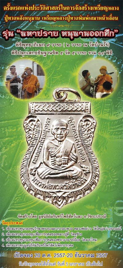 วัตถุมงคลหลวงปู่ทวดเหยียบน้ำทะเลจืดในสายวัตถุมงคลหลวงพ่อคูณ วัดบ้านไร่ ที่จัดสร้างอย่างเข้มขลังศักดิ์สิทธิ์และยาวนานที่สุดแห่งปี 2557(ระหว่างวันที่ 24 กุมภาพันธ์ 2557 ถึง วันที่ 26 กรกฎาคม 2557)