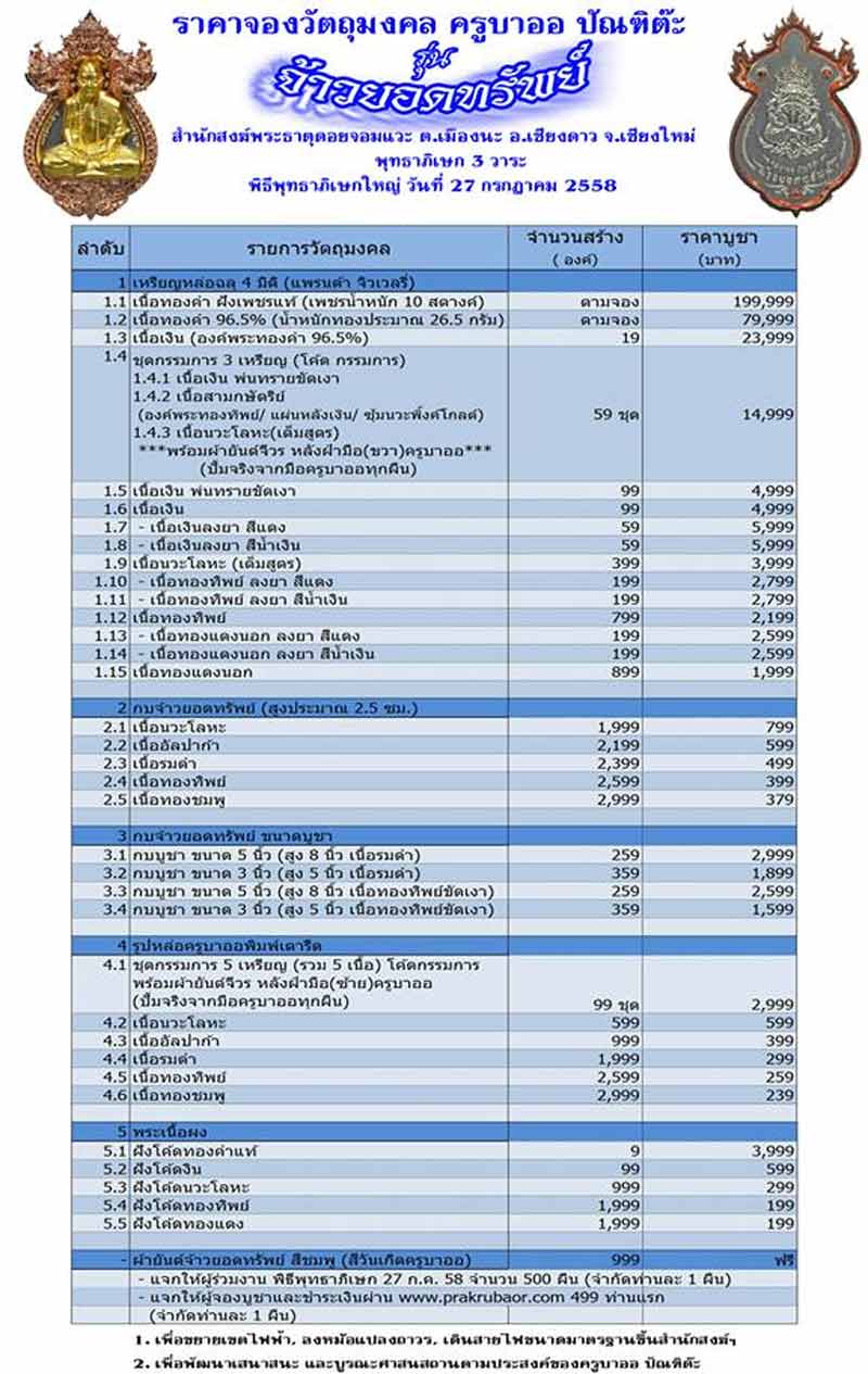 - วาระ 2 ครูบาออพุทธาภิเษกเดี่ยว 3 วัน 3 คืน ระหว่างวันที่ 24 - 26 กรกฎาคม 2558