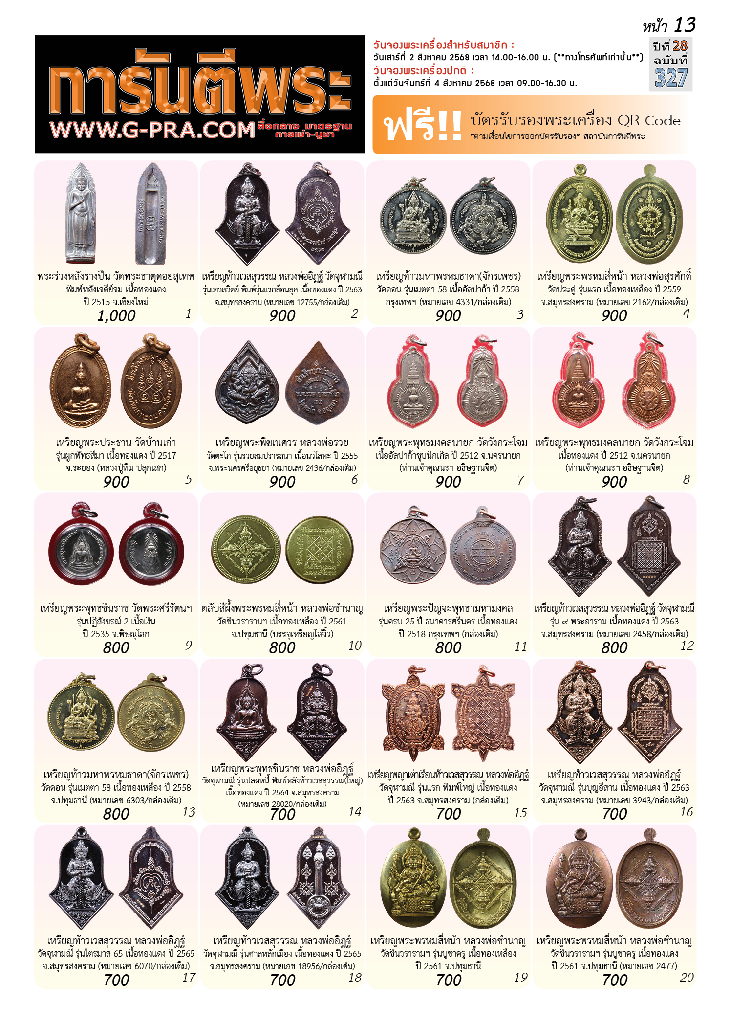 กรุณาเลือกเล่มนิตยสารการันตีพระ :