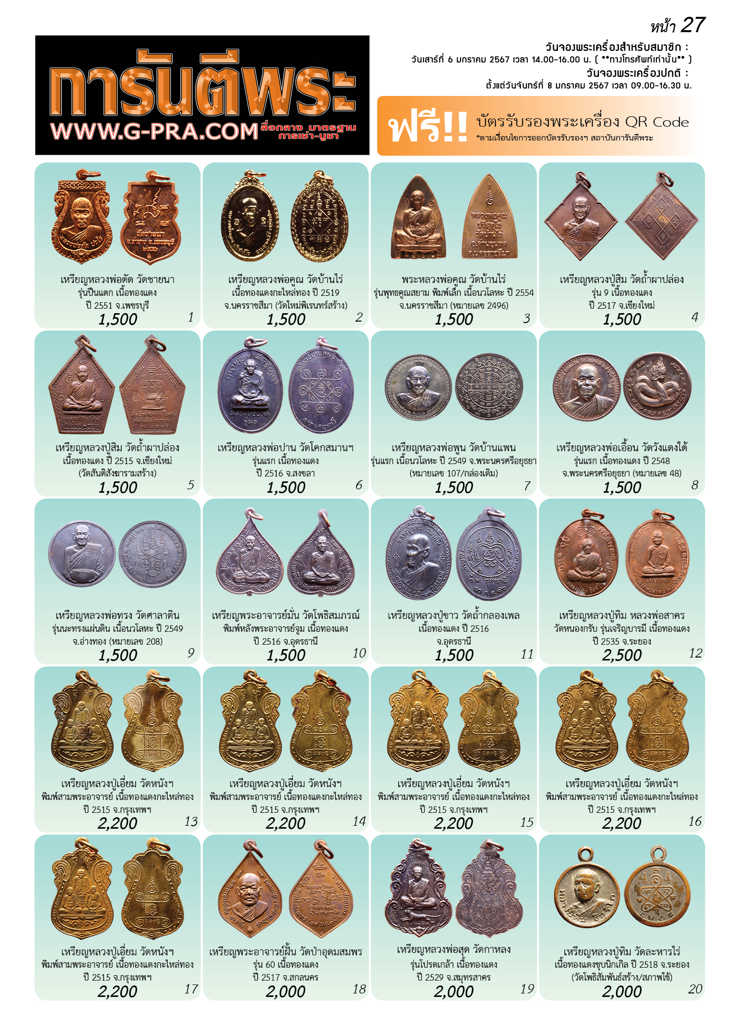 กรุณาเลือกเล่มนิตยสารการันตีพระ :