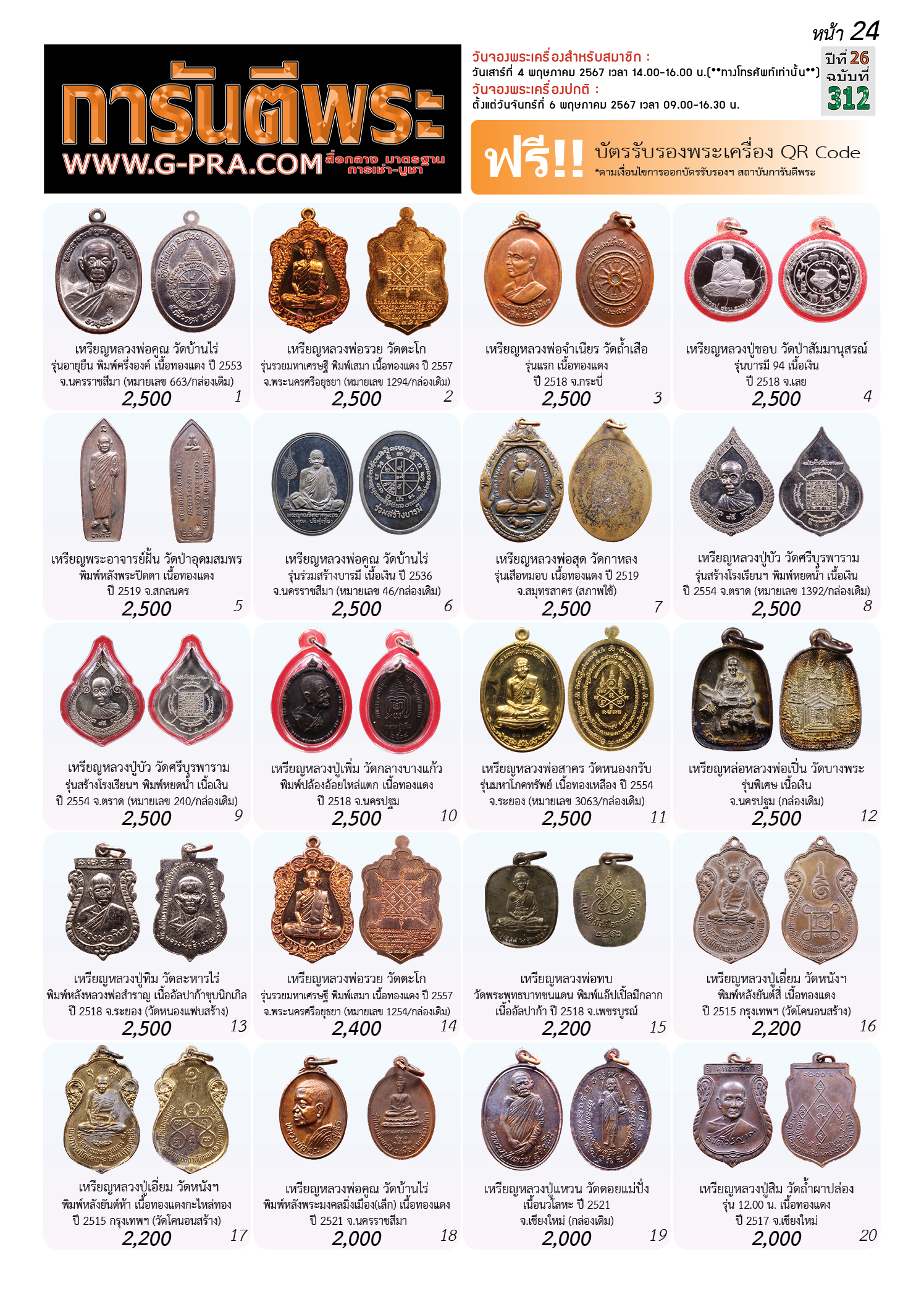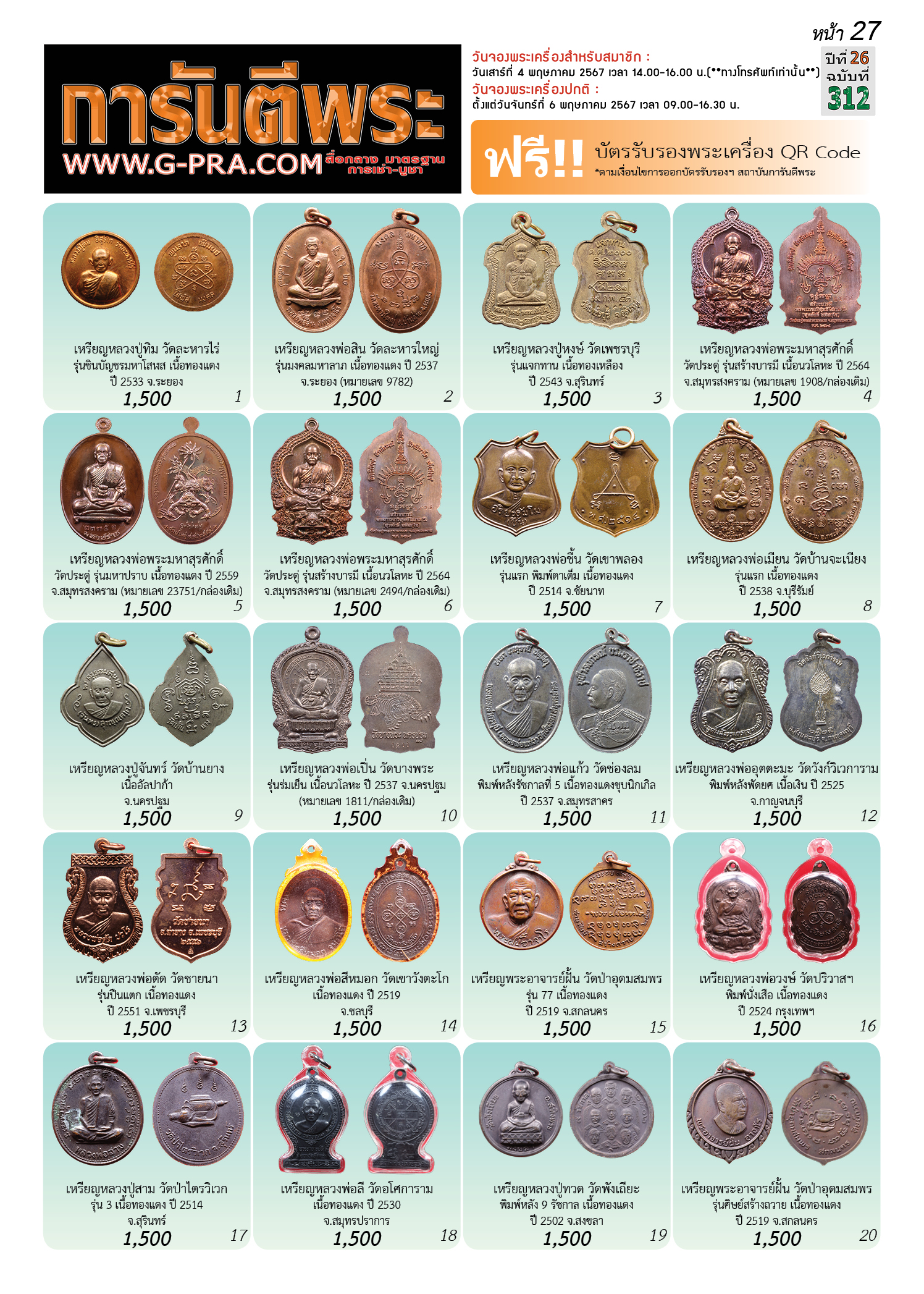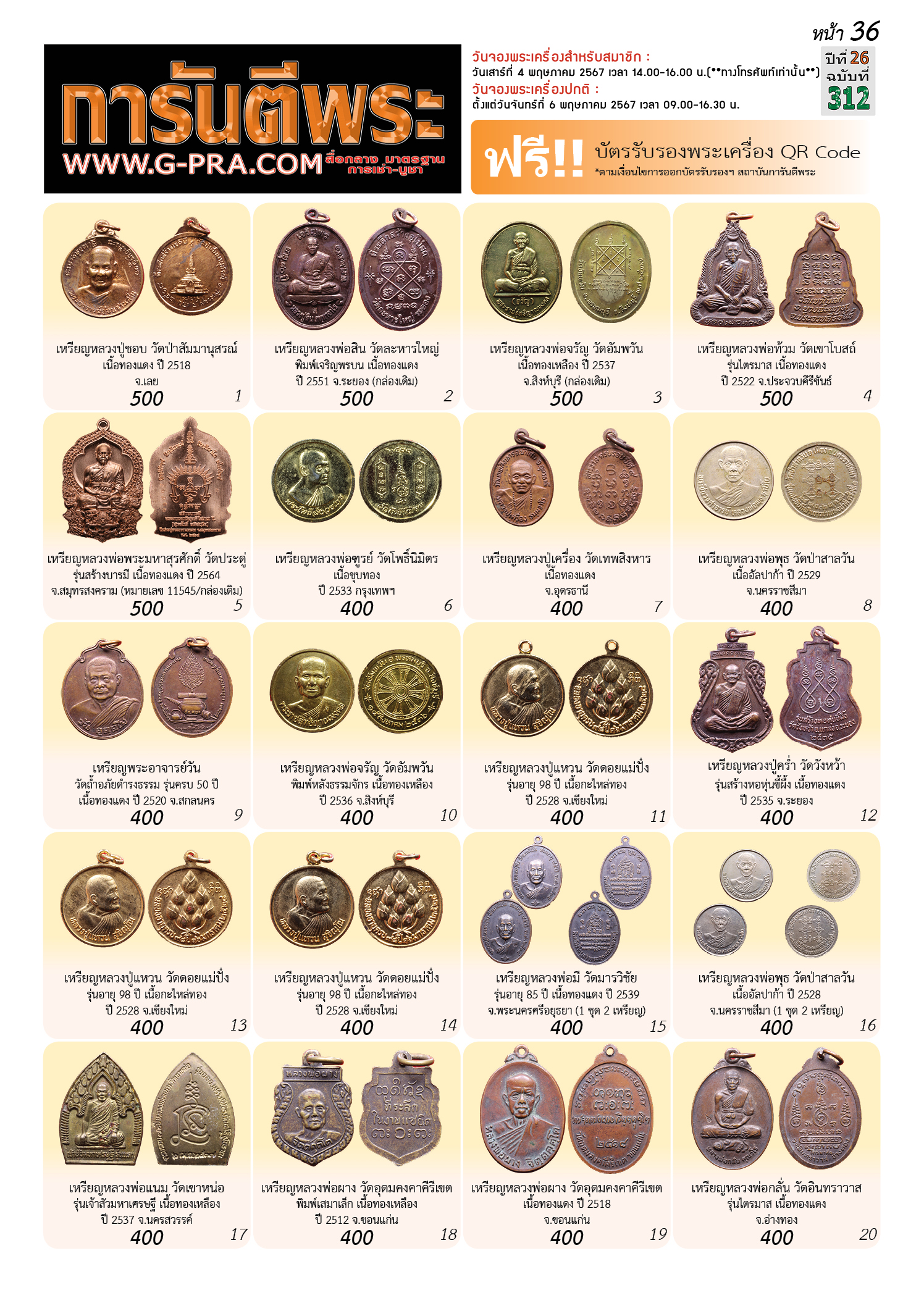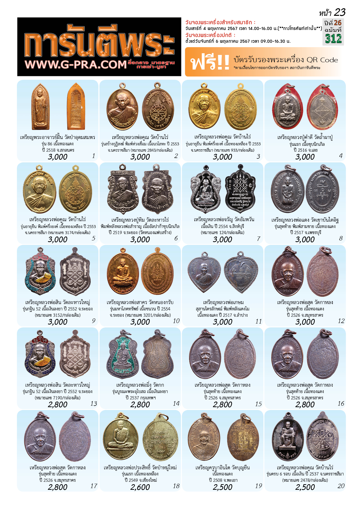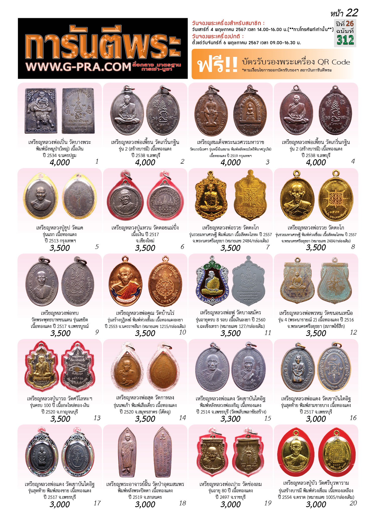 กรุณาเลือกเล่มนิตยสารการันตีพระ :