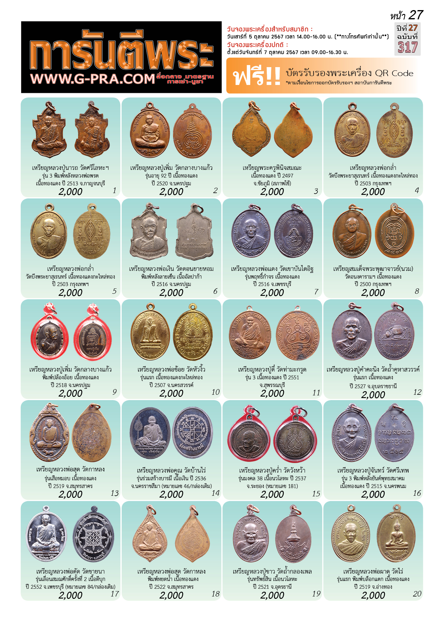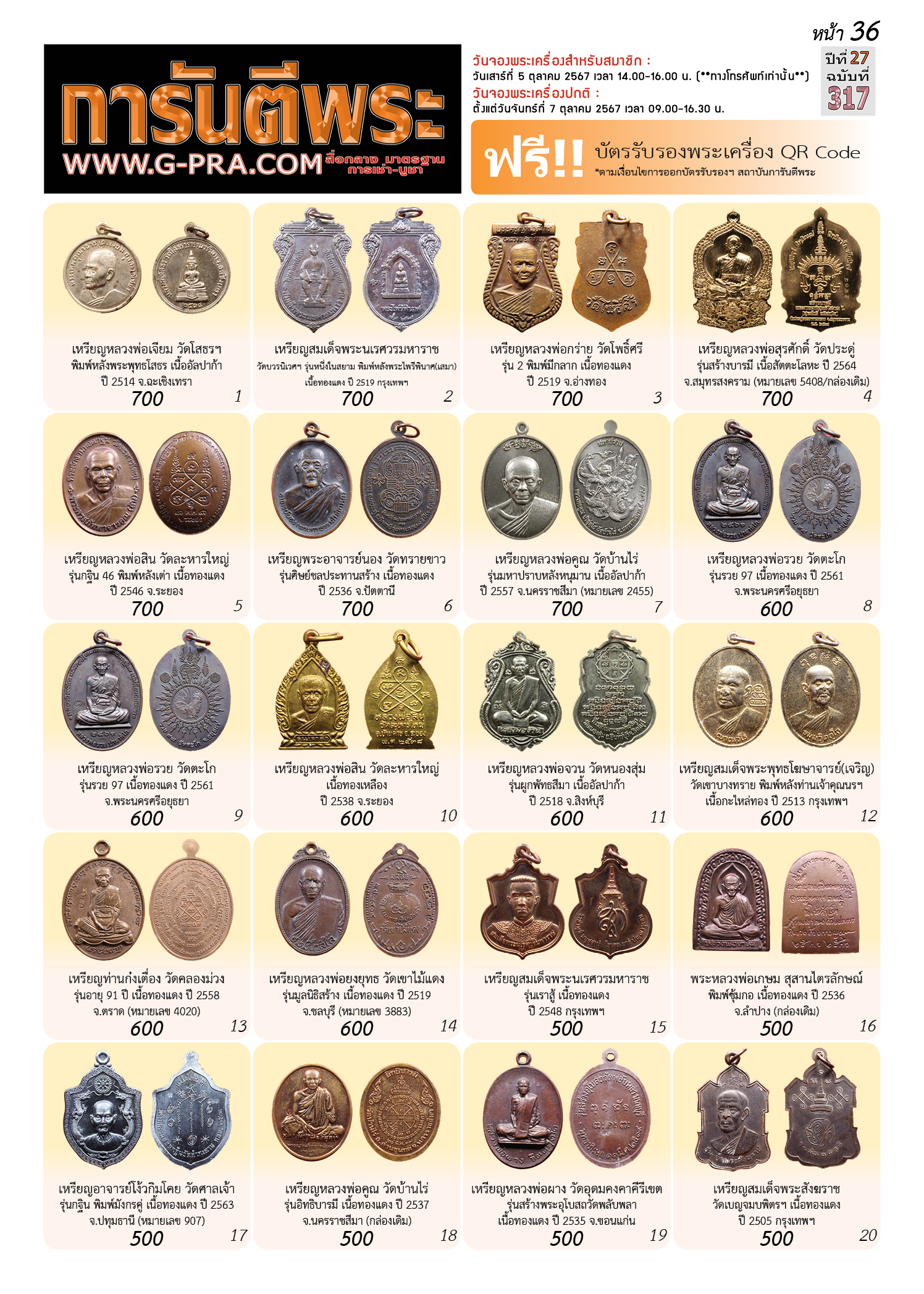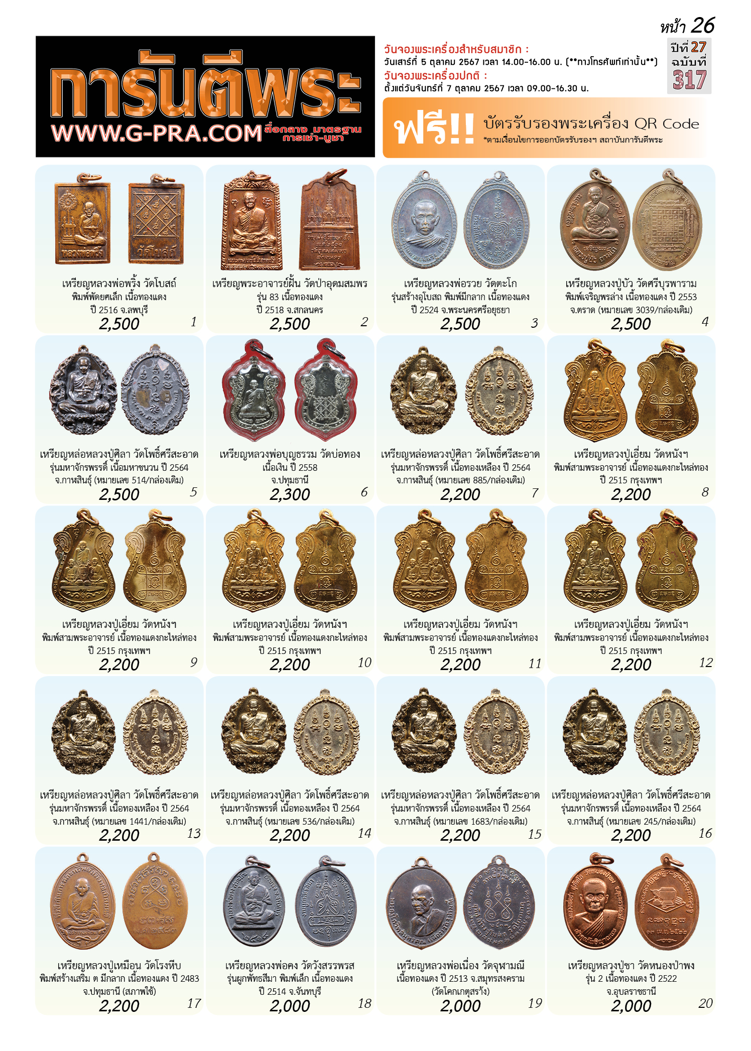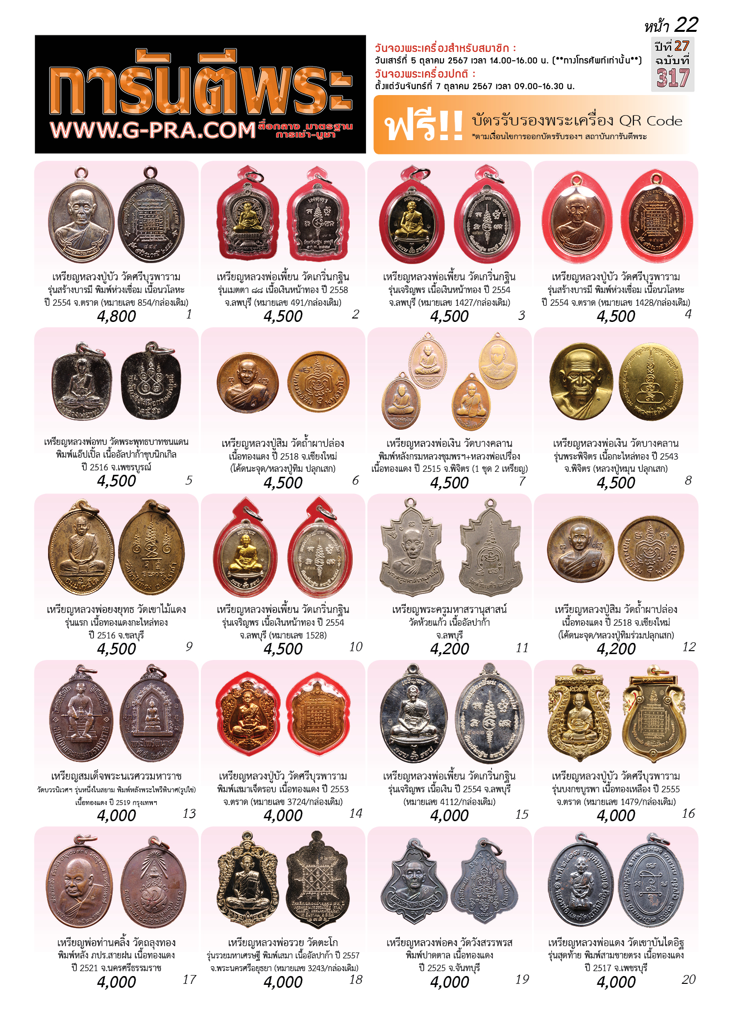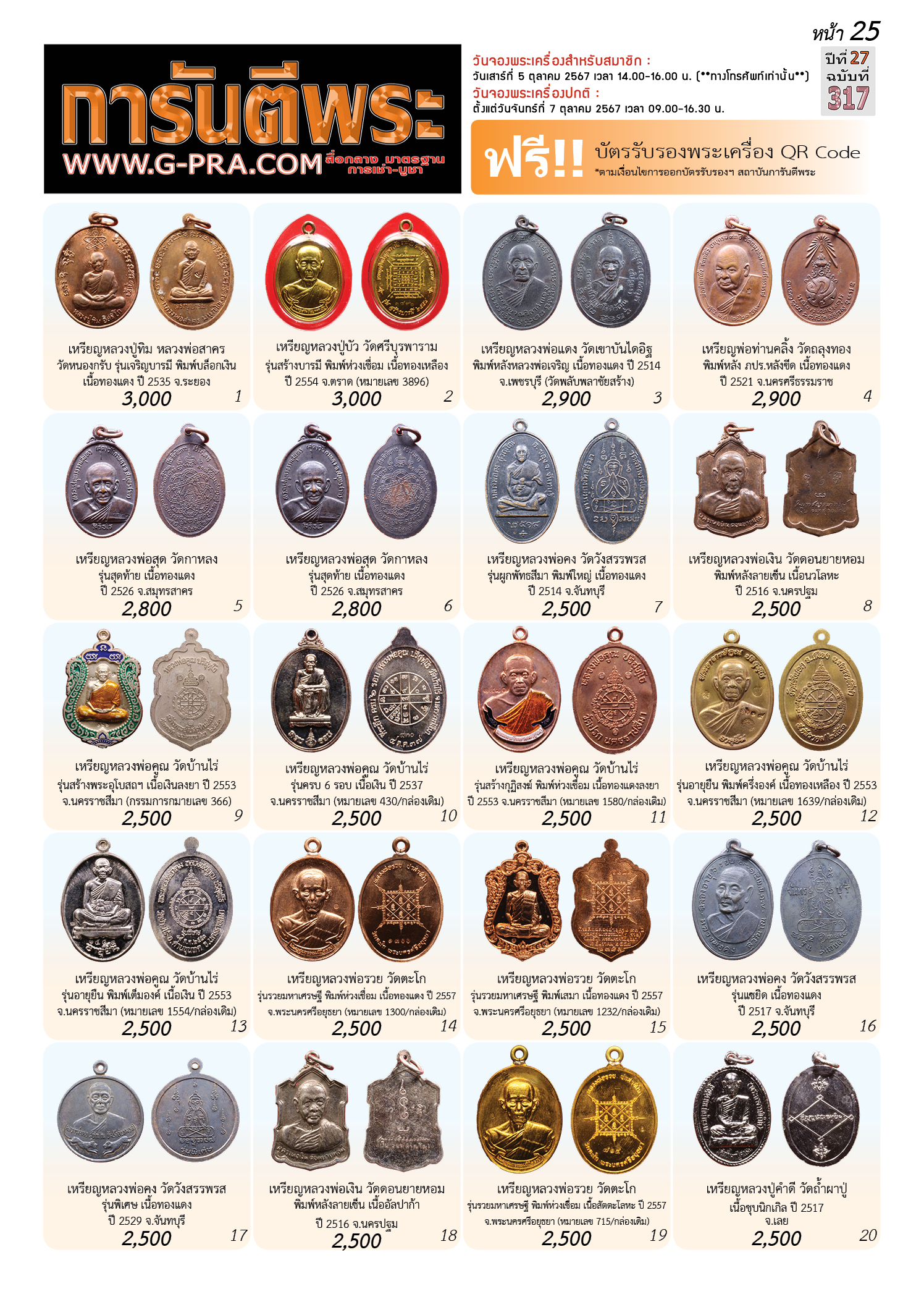 กรุณาเลือกเล่มนิตยสารการันตีพระ :