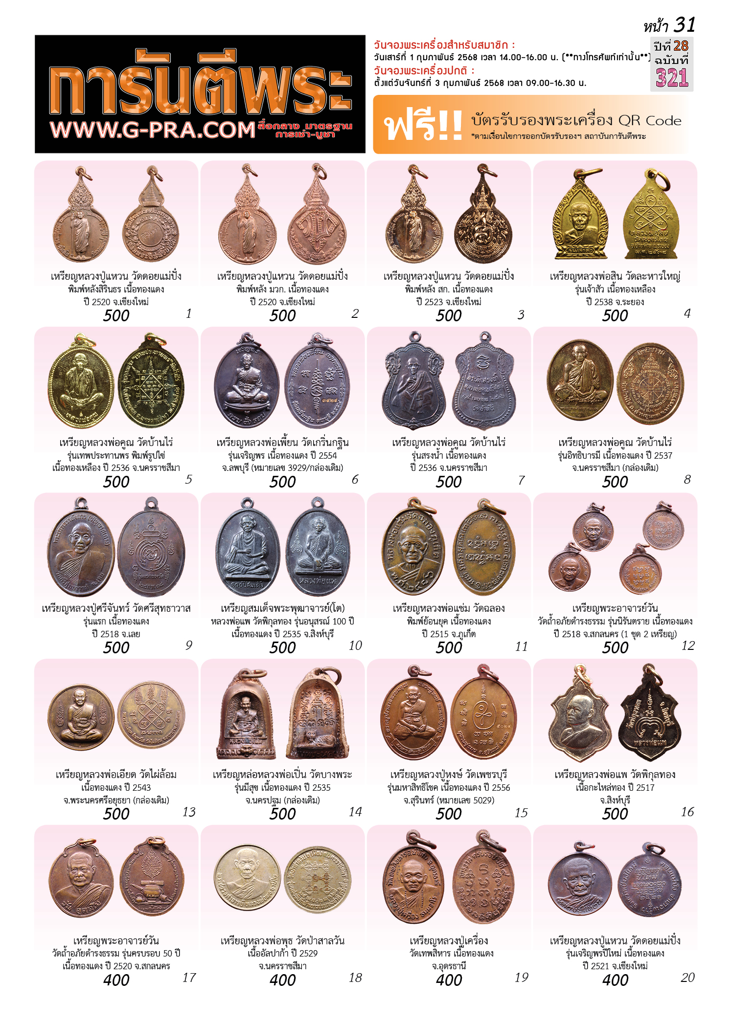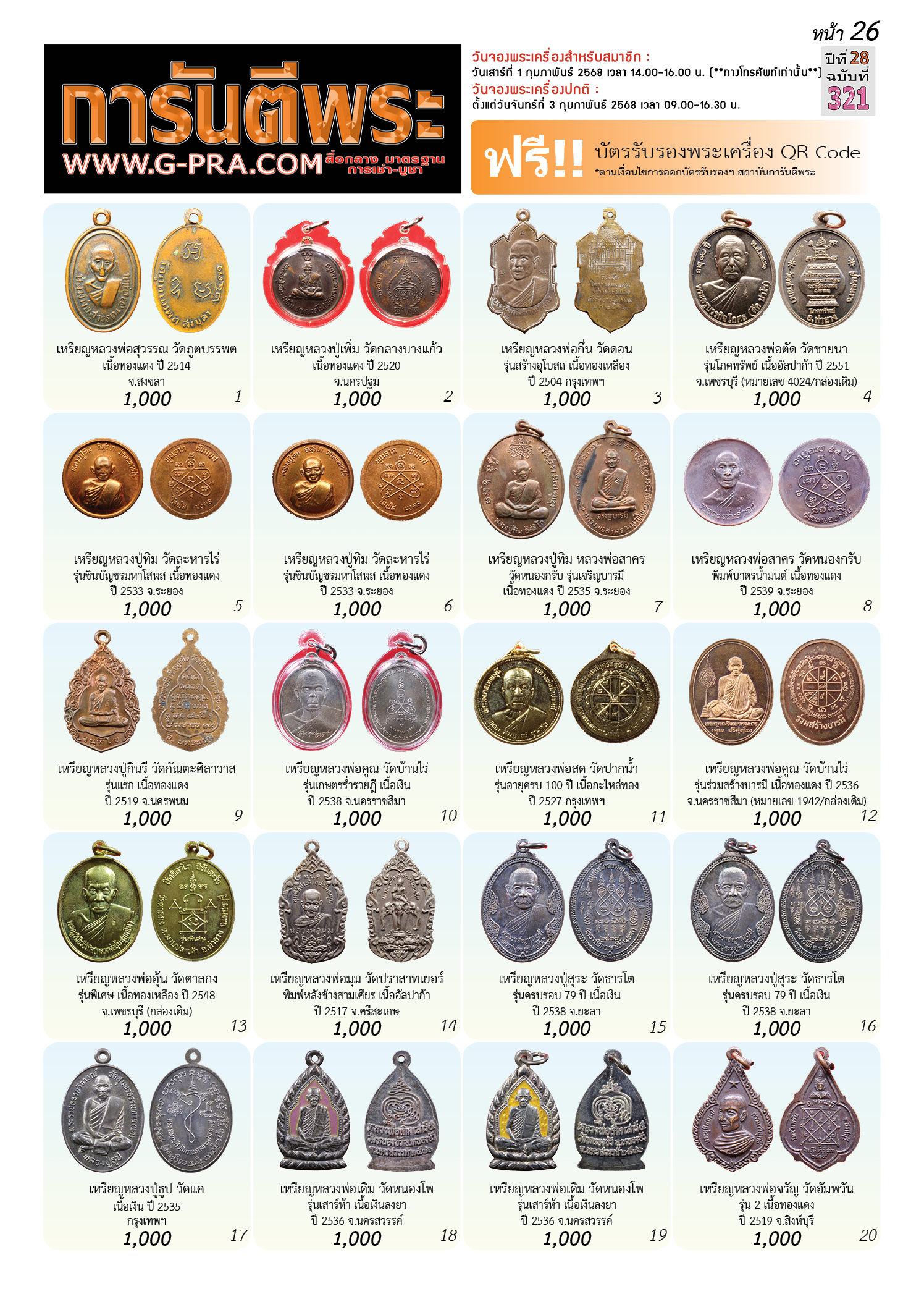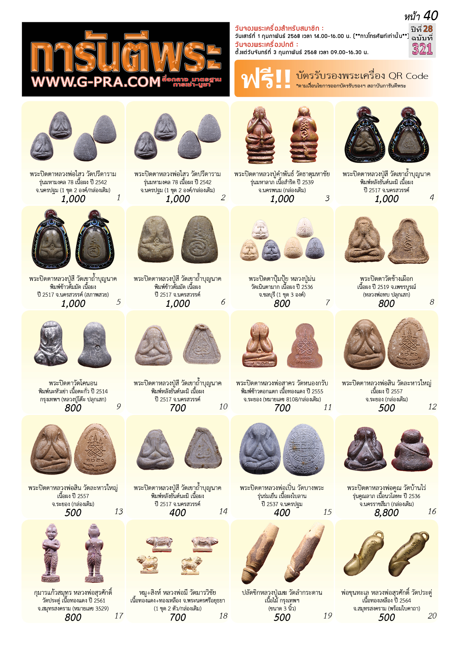 กรุณาเลือกเล่มนิตยสารการันตีพระ :