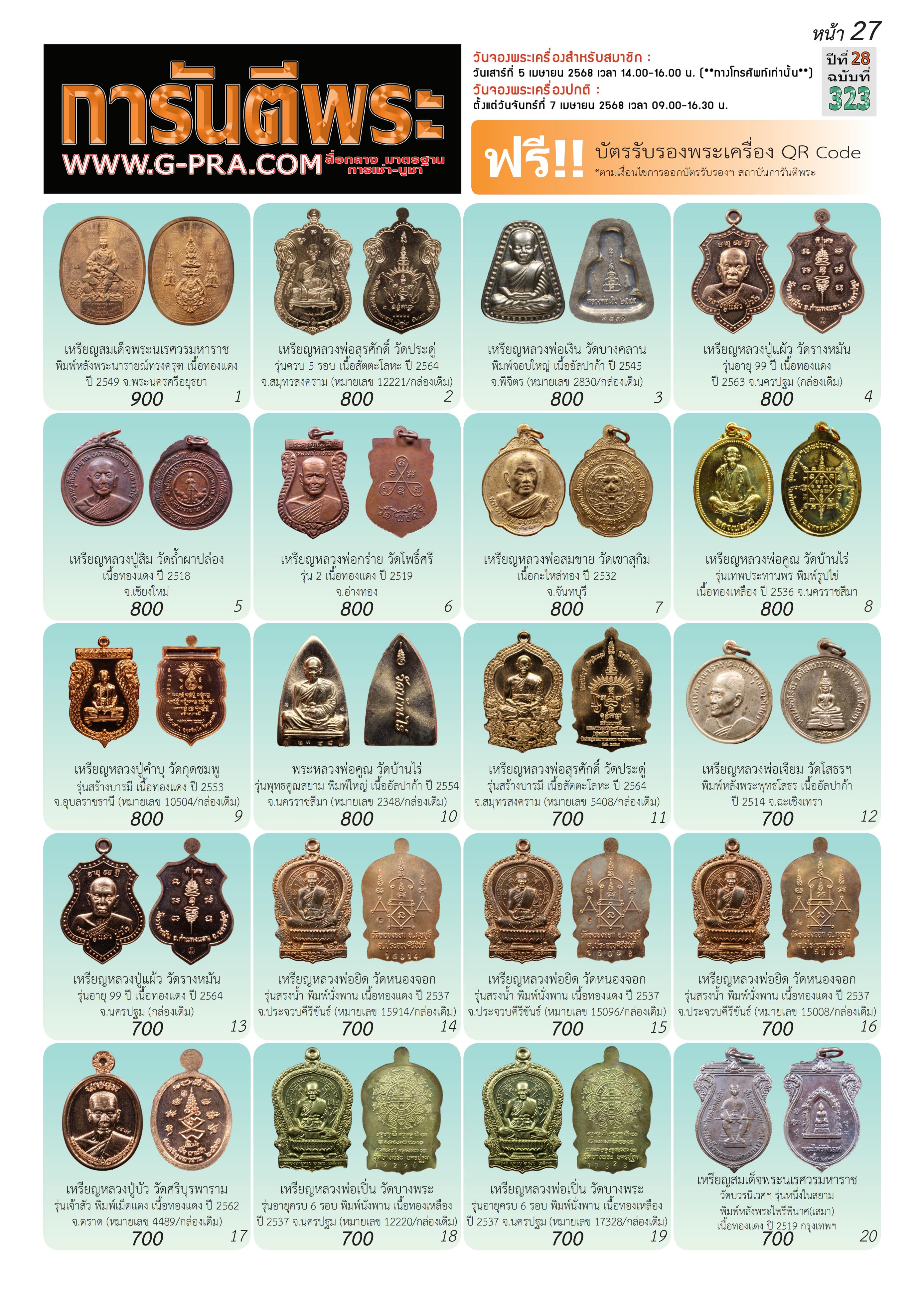 กรุณาเลือกเล่มนิตยสารการันตีพระ :