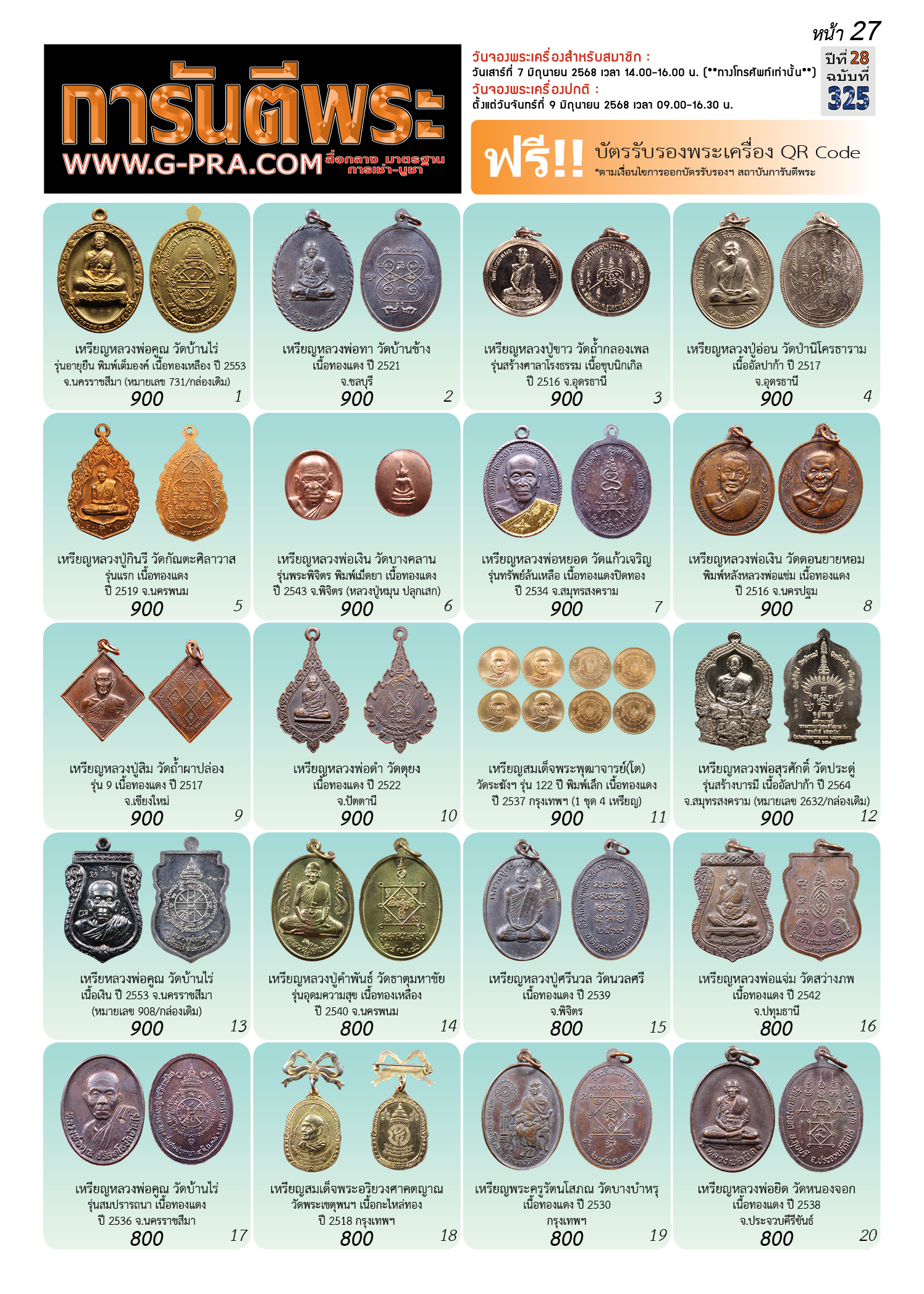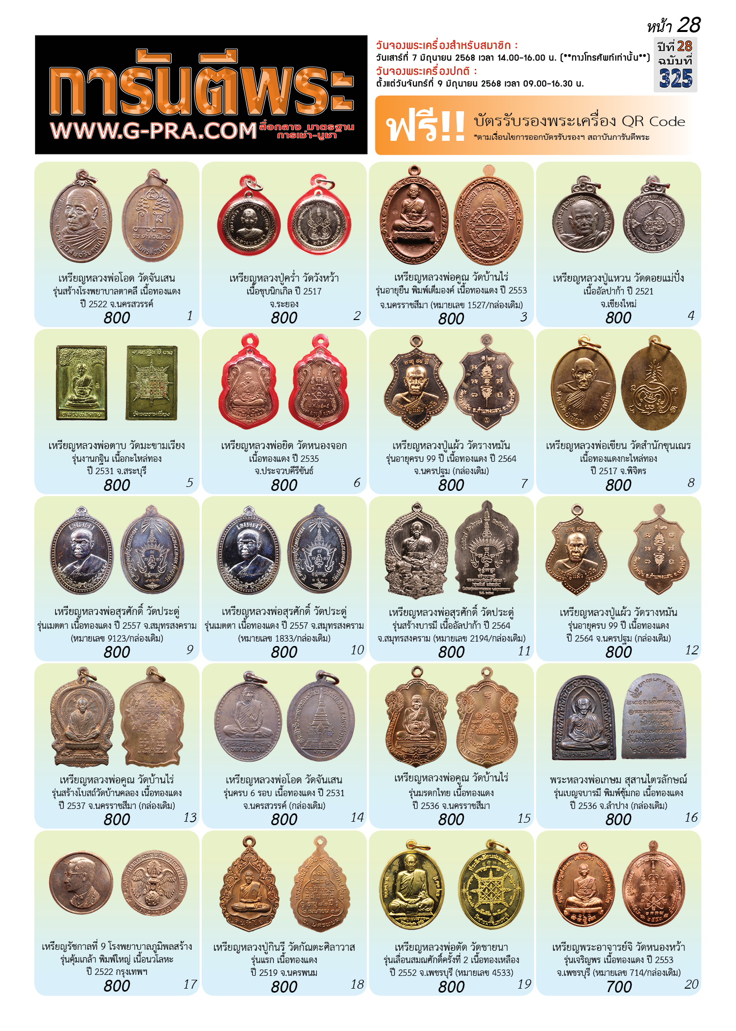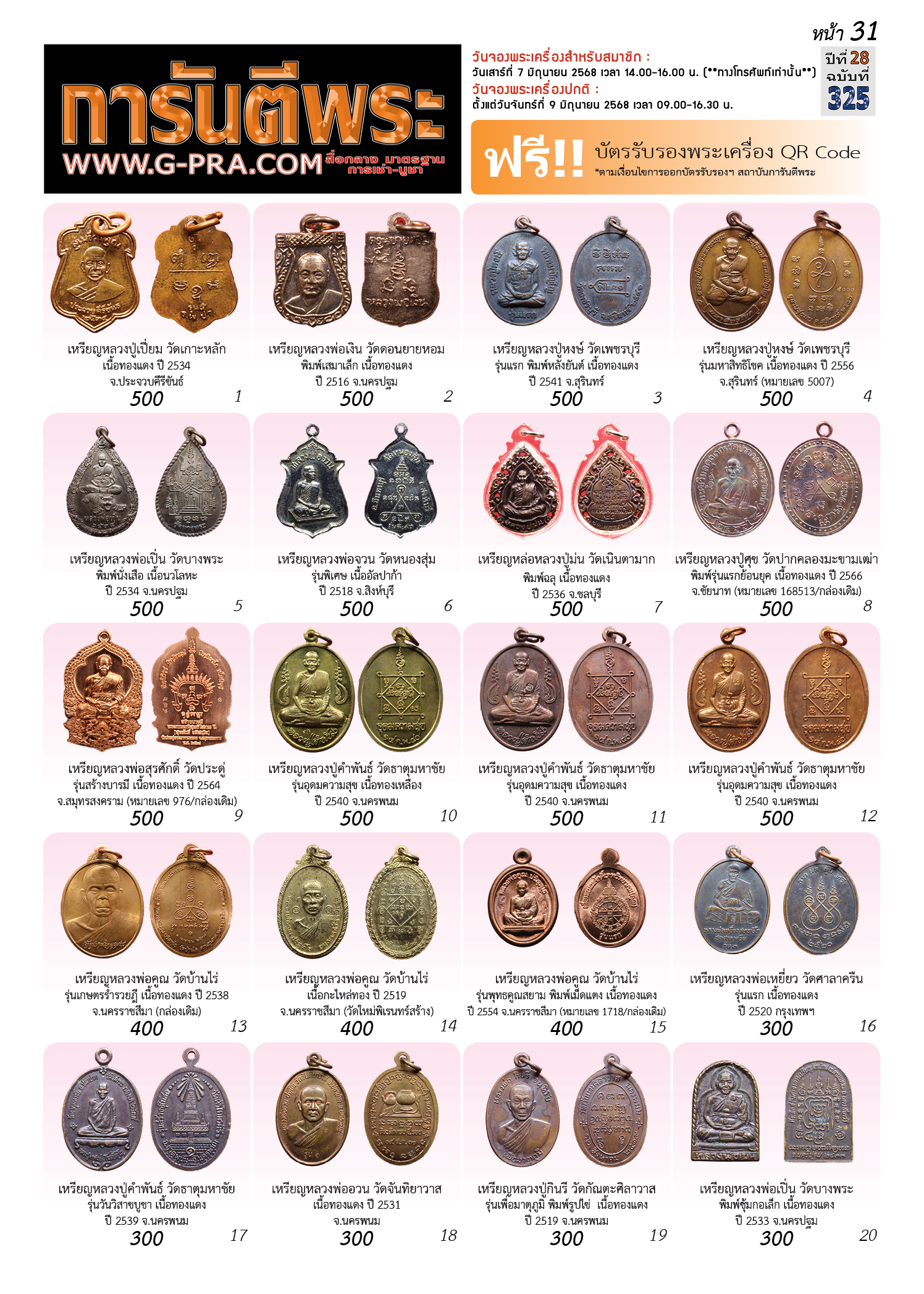 กรุณาเลือกเล่มนิตยสารการันตีพระ :