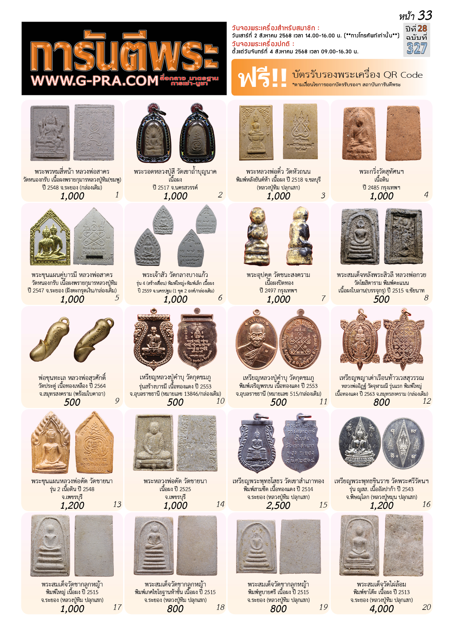 กรุณาเลือกเล่มนิตยสารการันตีพระ :