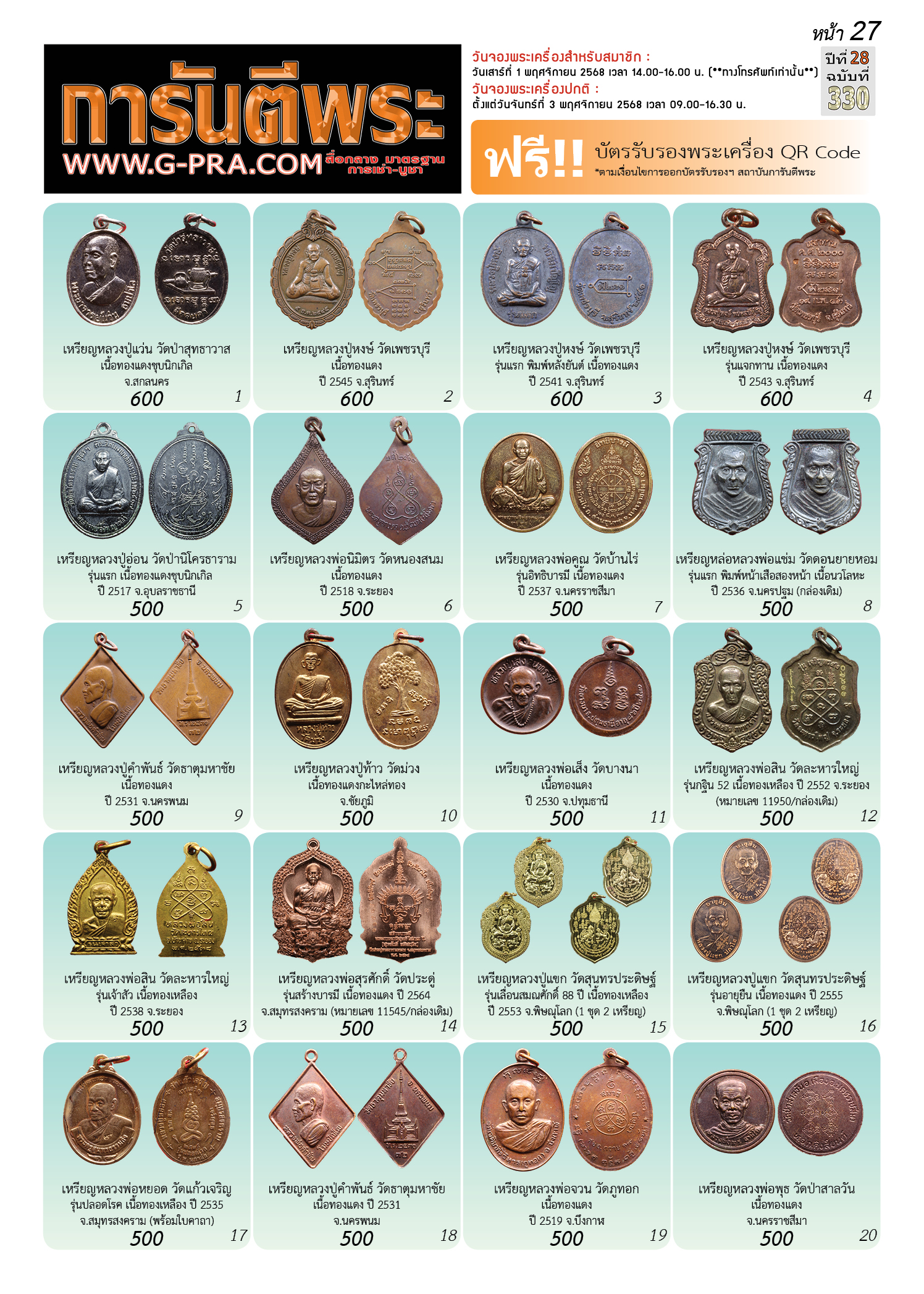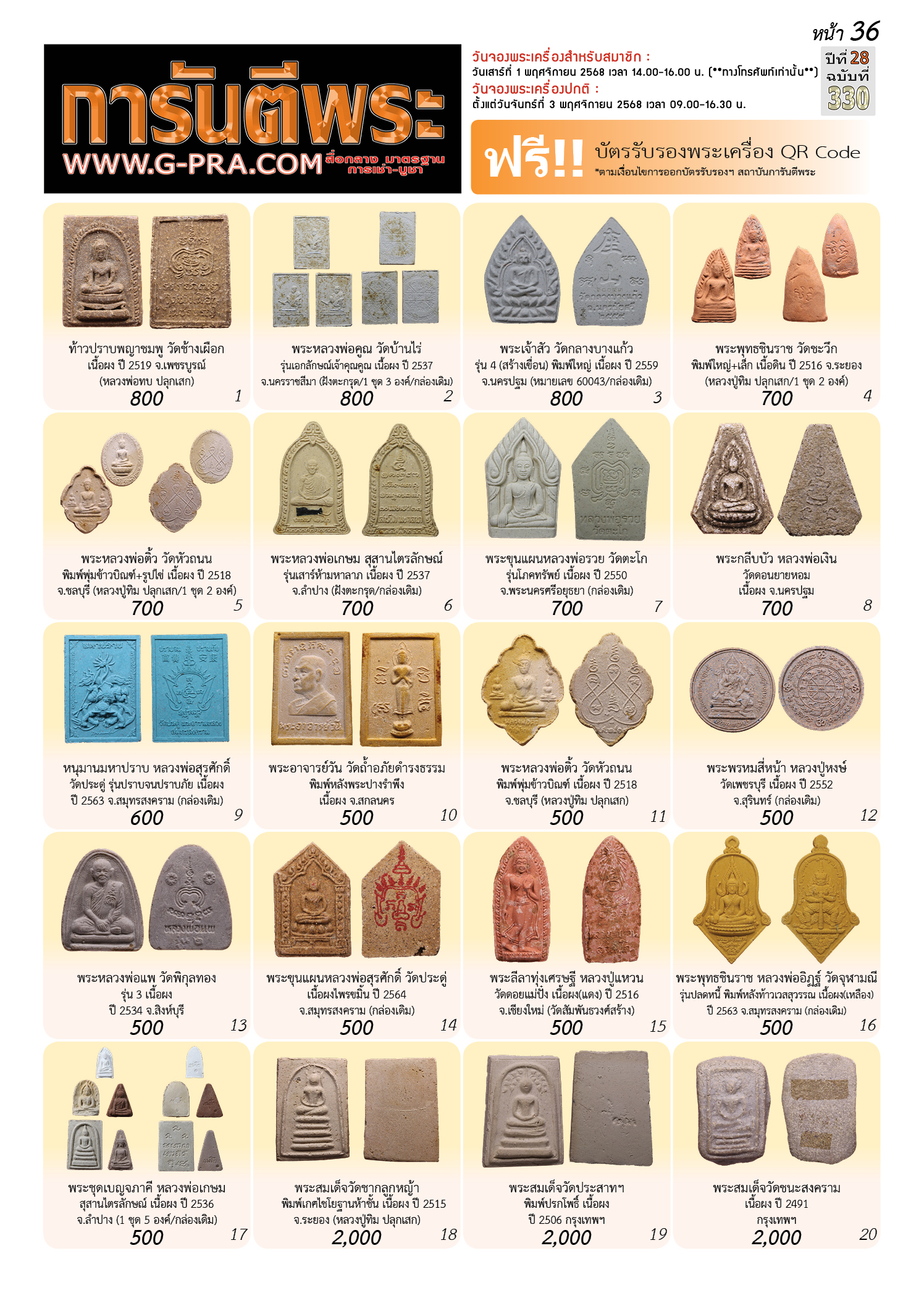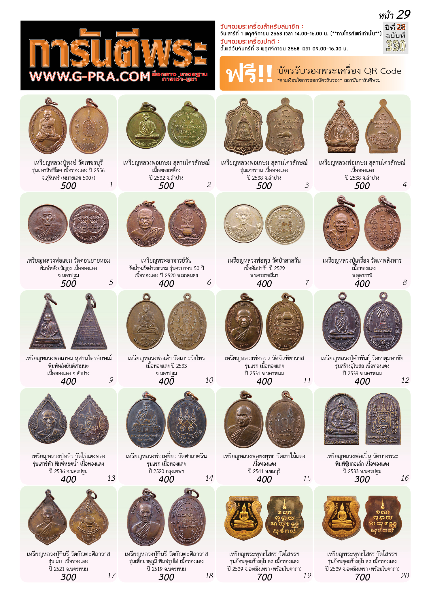 กรุณาเลือกเล่มนิตยสารการันตีพระ :