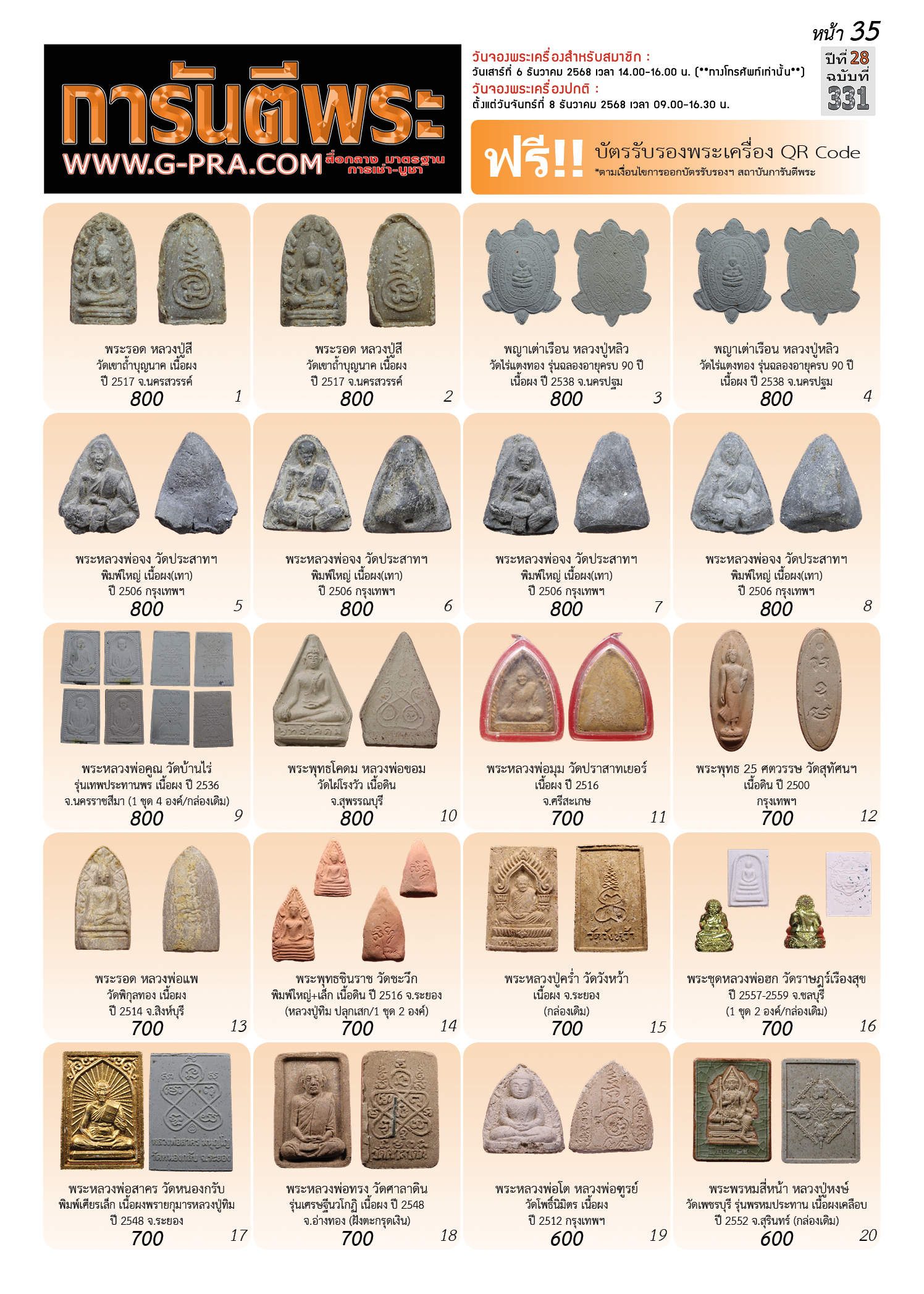 กรุณาเลือกเล่มนิตยสารการันตีพระ :