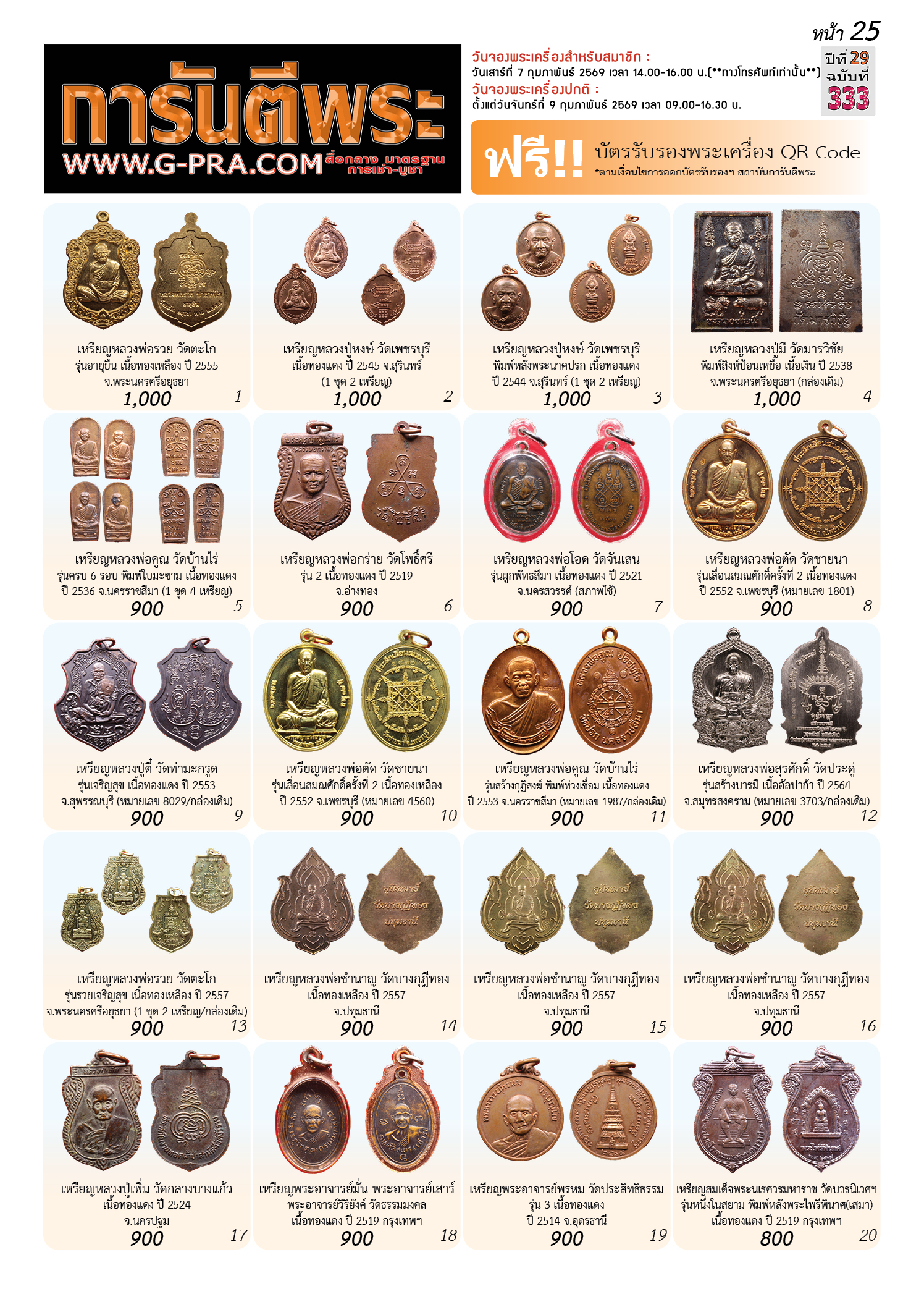 กรุณาเลือกเล่มนิตยสารการันตีพระ :