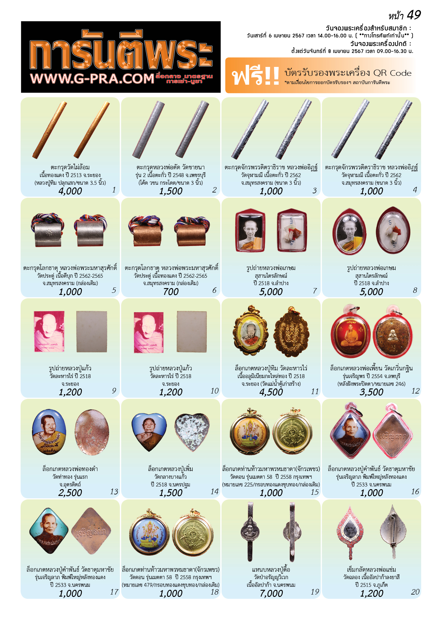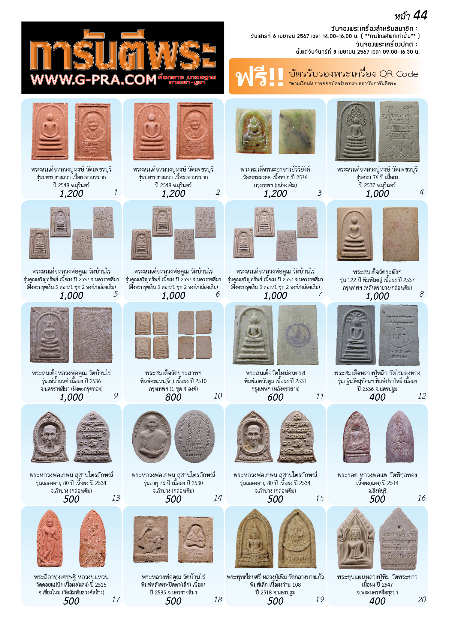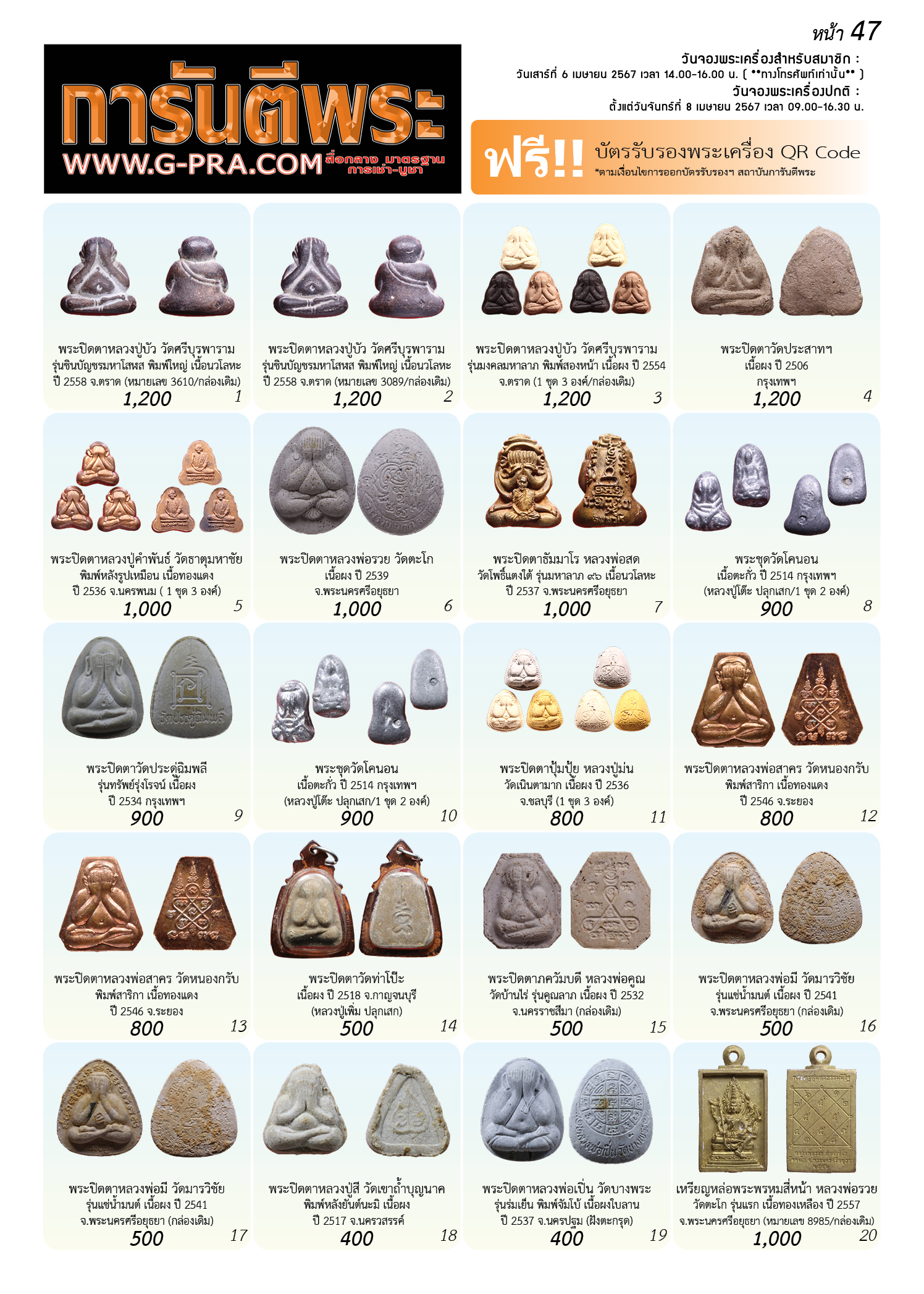 กรุณาเลือกเล่มนิตยสารการันตีพระ :