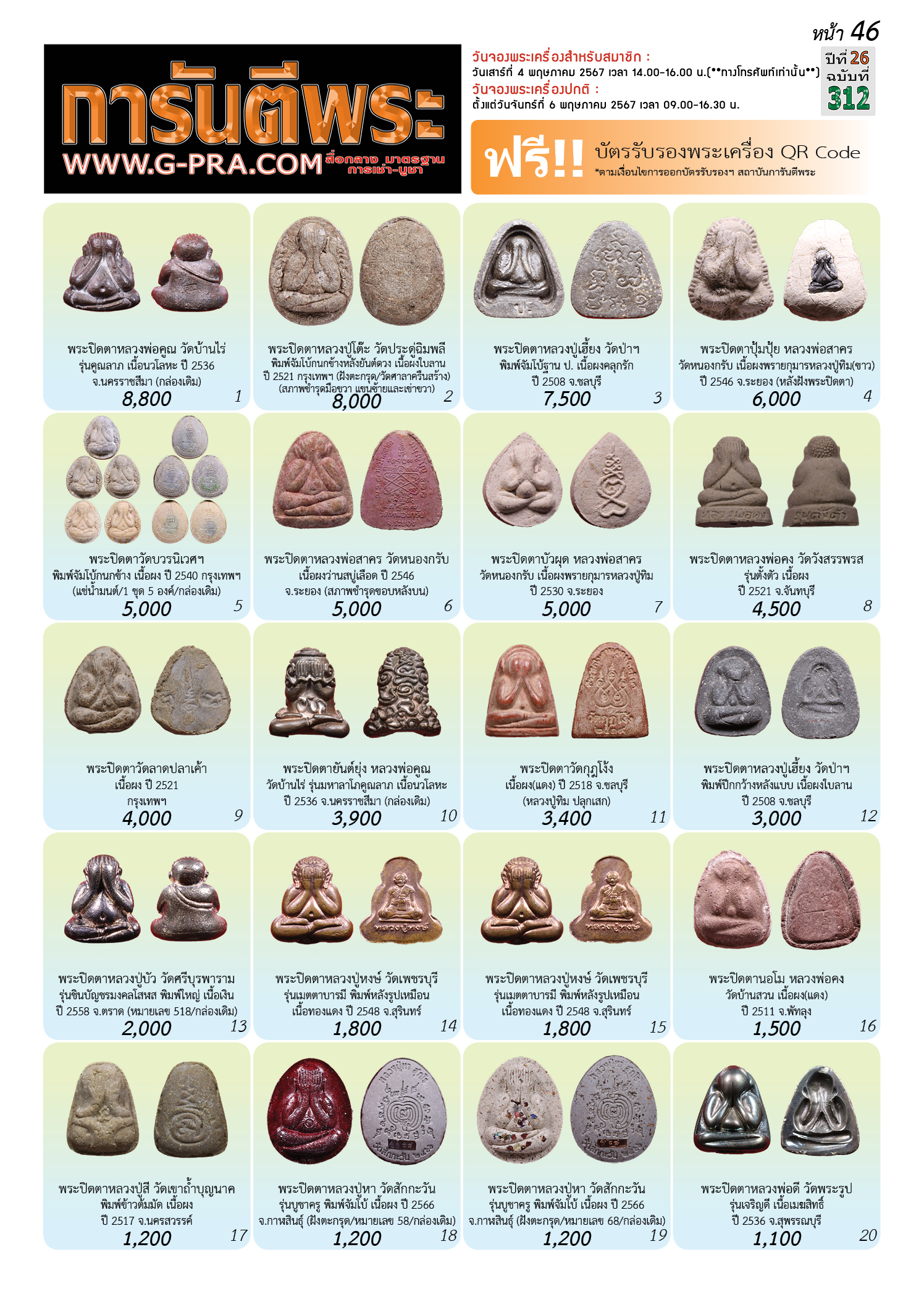 กรุณาเลือกเล่มนิตยสารการันตีพระ :