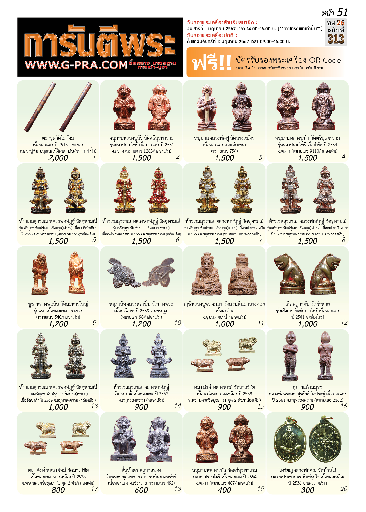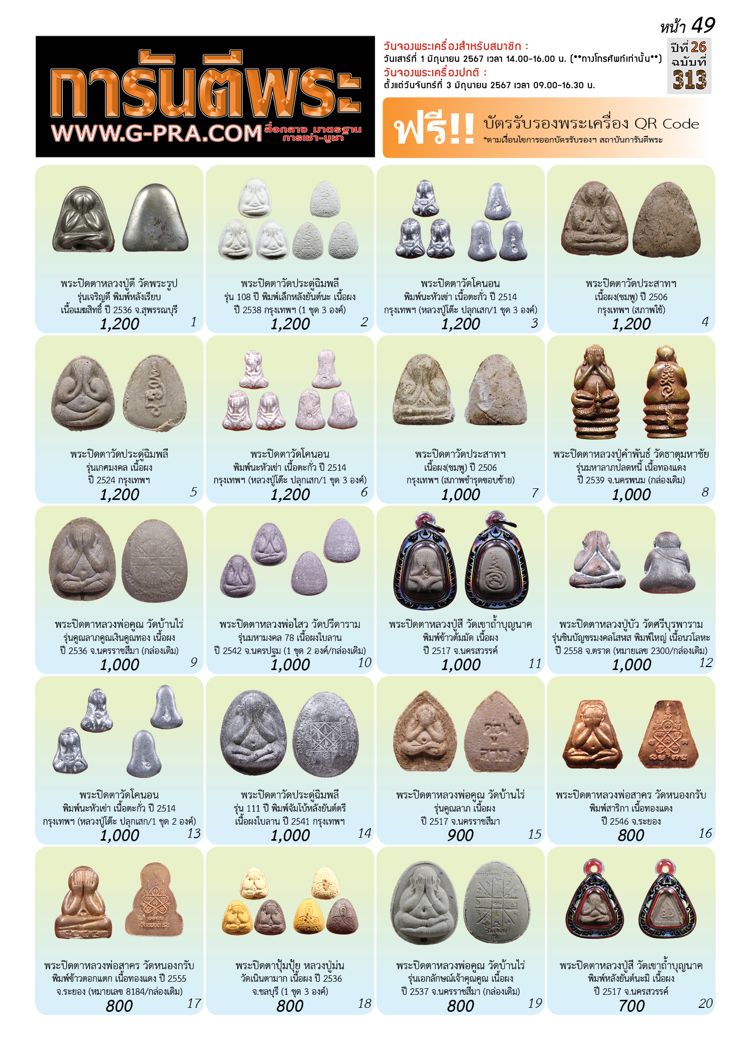 กรุณาเลือกเล่มนิตยสารการันตีพระ :