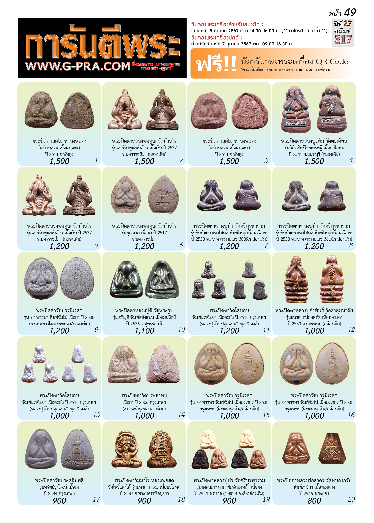 กรุณาเลือกเล่มนิตยสารการันตีพระ :
