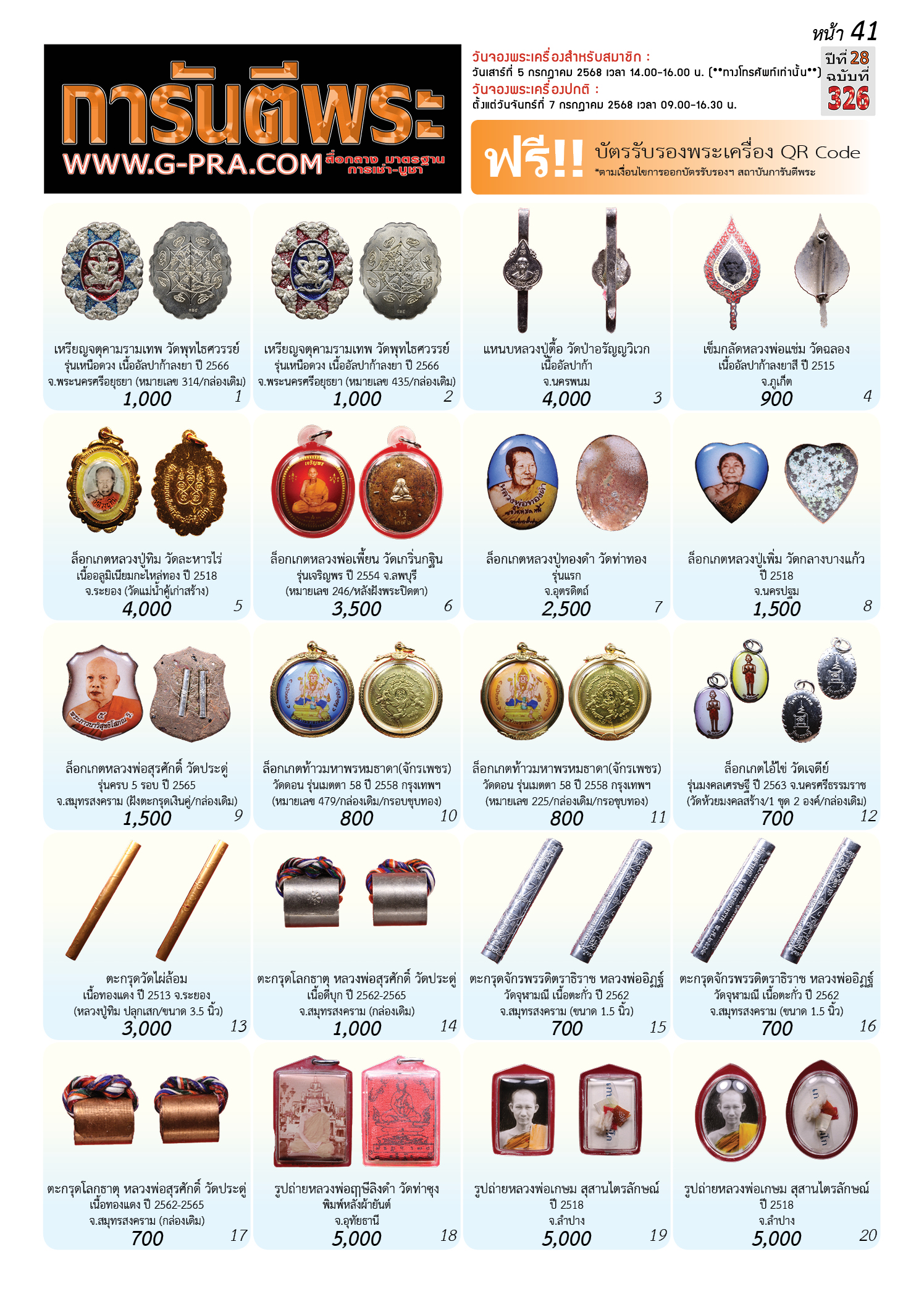 กรุณาเลือกเล่มนิตยสารการันตีพระ :