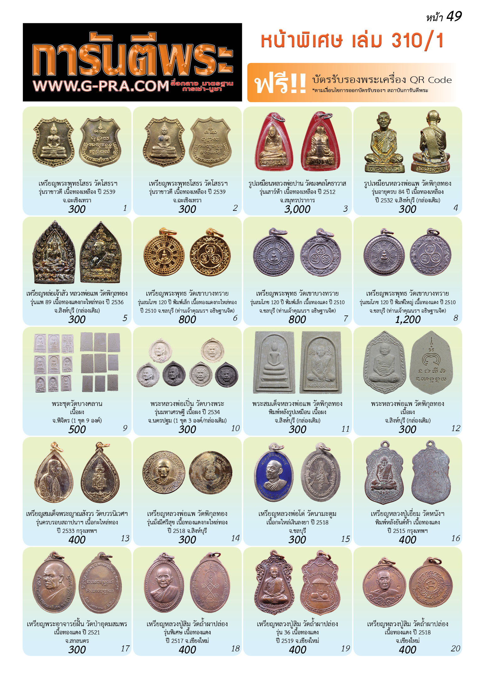 กรุณาเลือกเล่มนิตยสารการันตีพระ :