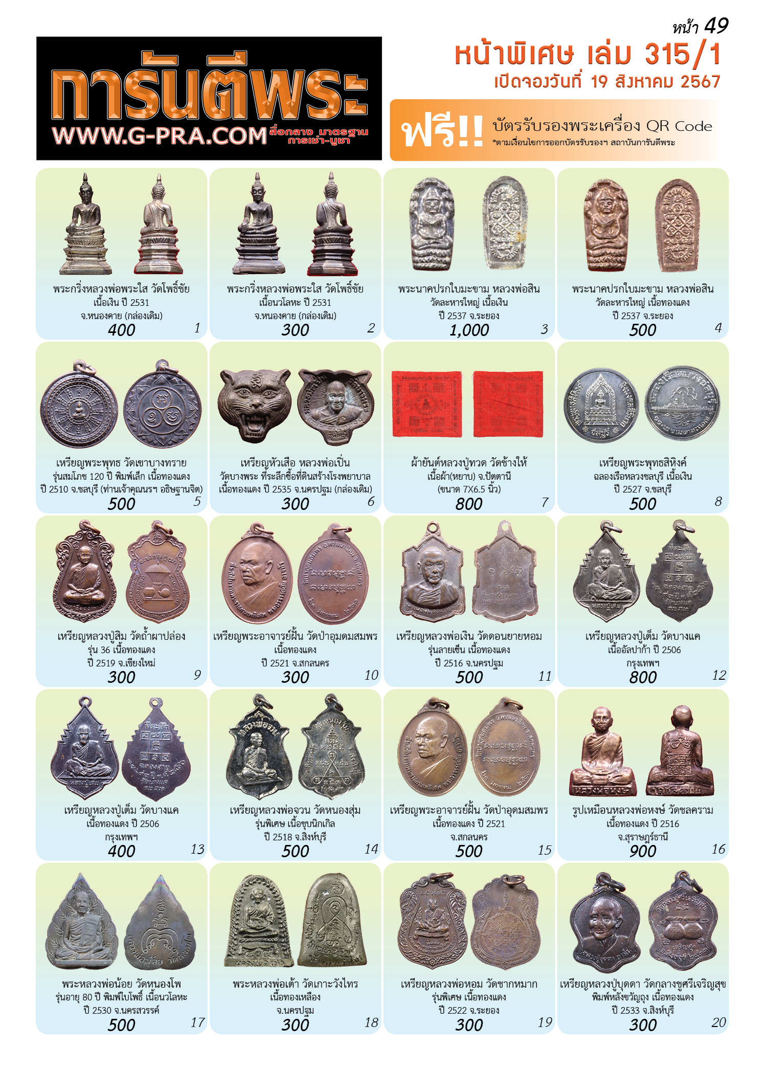 กรุณาเลือกเล่มนิตยสารการันตีพระ :