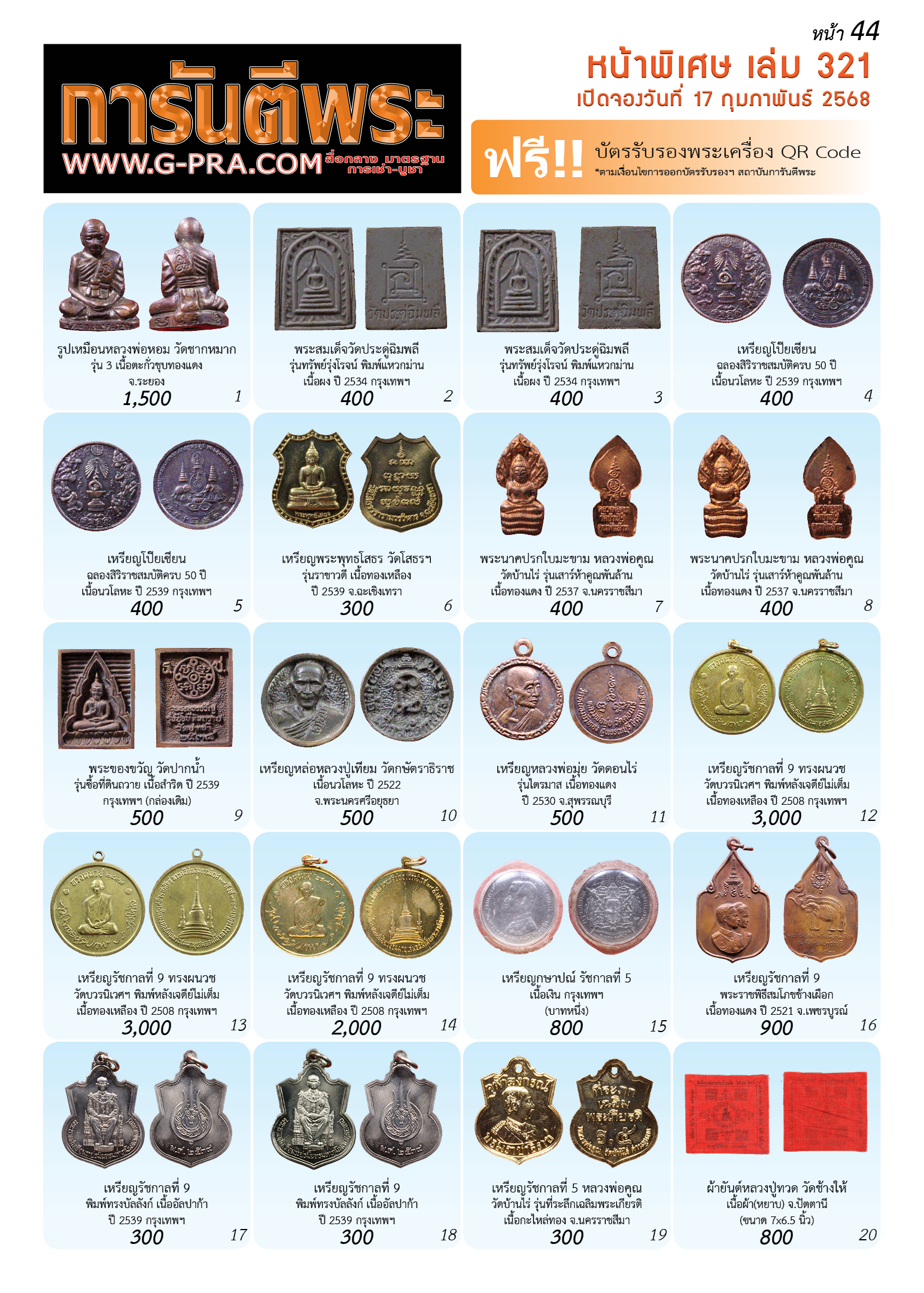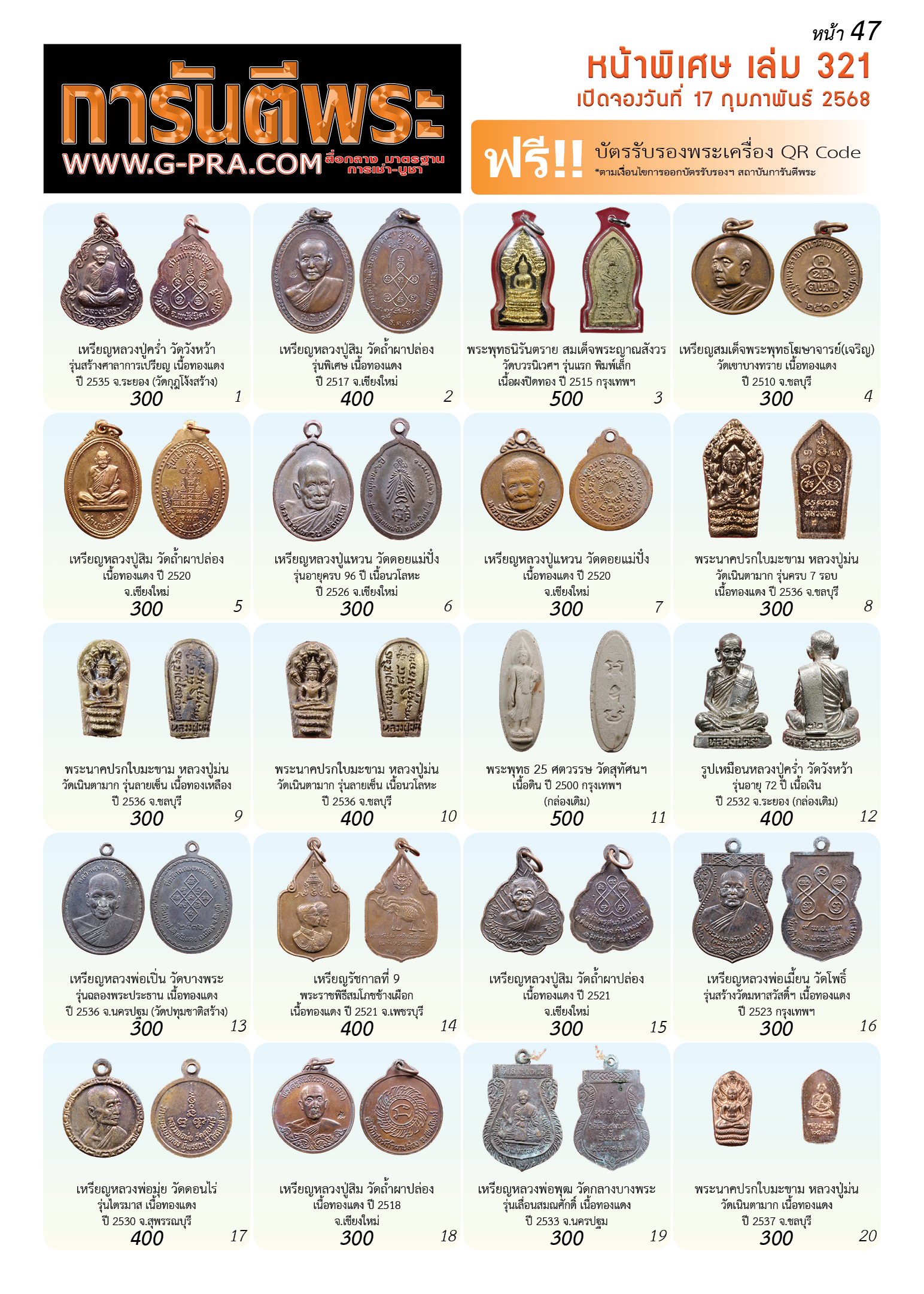 กรุณาเลือกเล่มนิตยสารการันตีพระ :