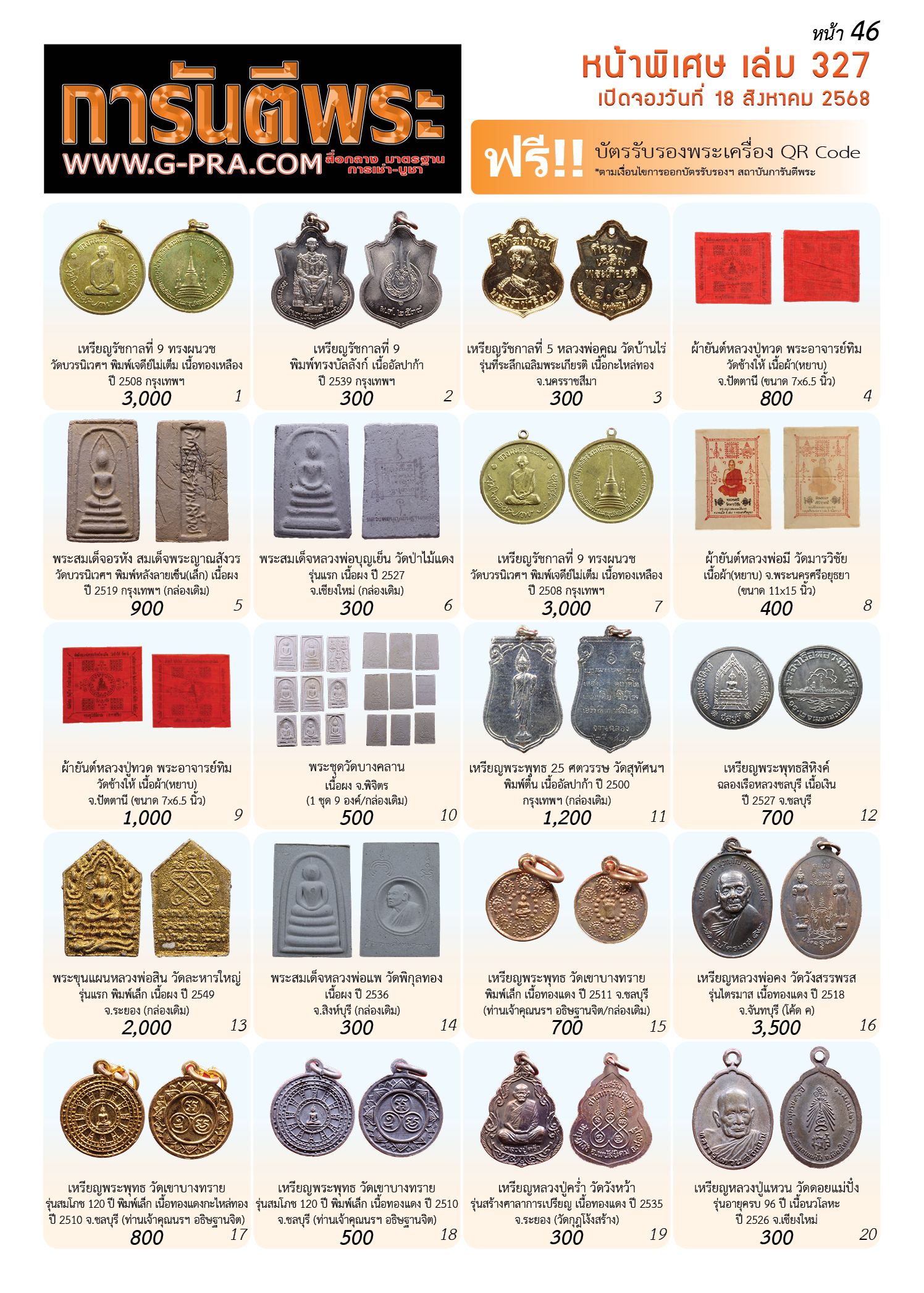 กรุณาเลือกเล่มนิตยสารการันตีพระ :