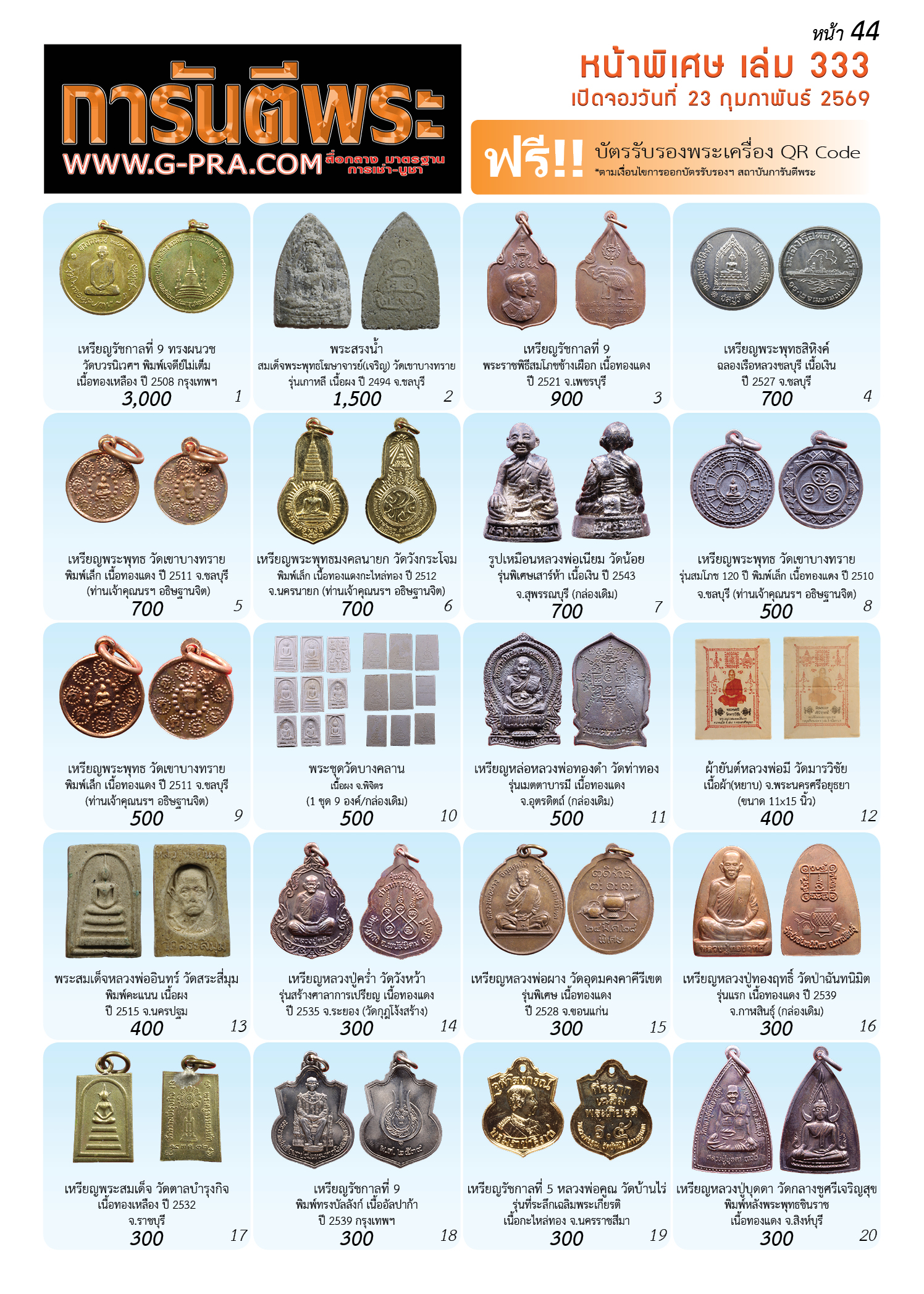 กรุณาเลือกเล่มนิตยสารการันตีพระ :