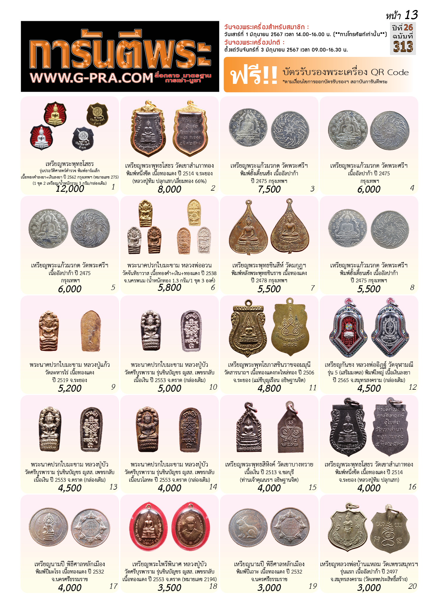 กรุณาเลือกเล่มนิตยสารการันตีพระ :