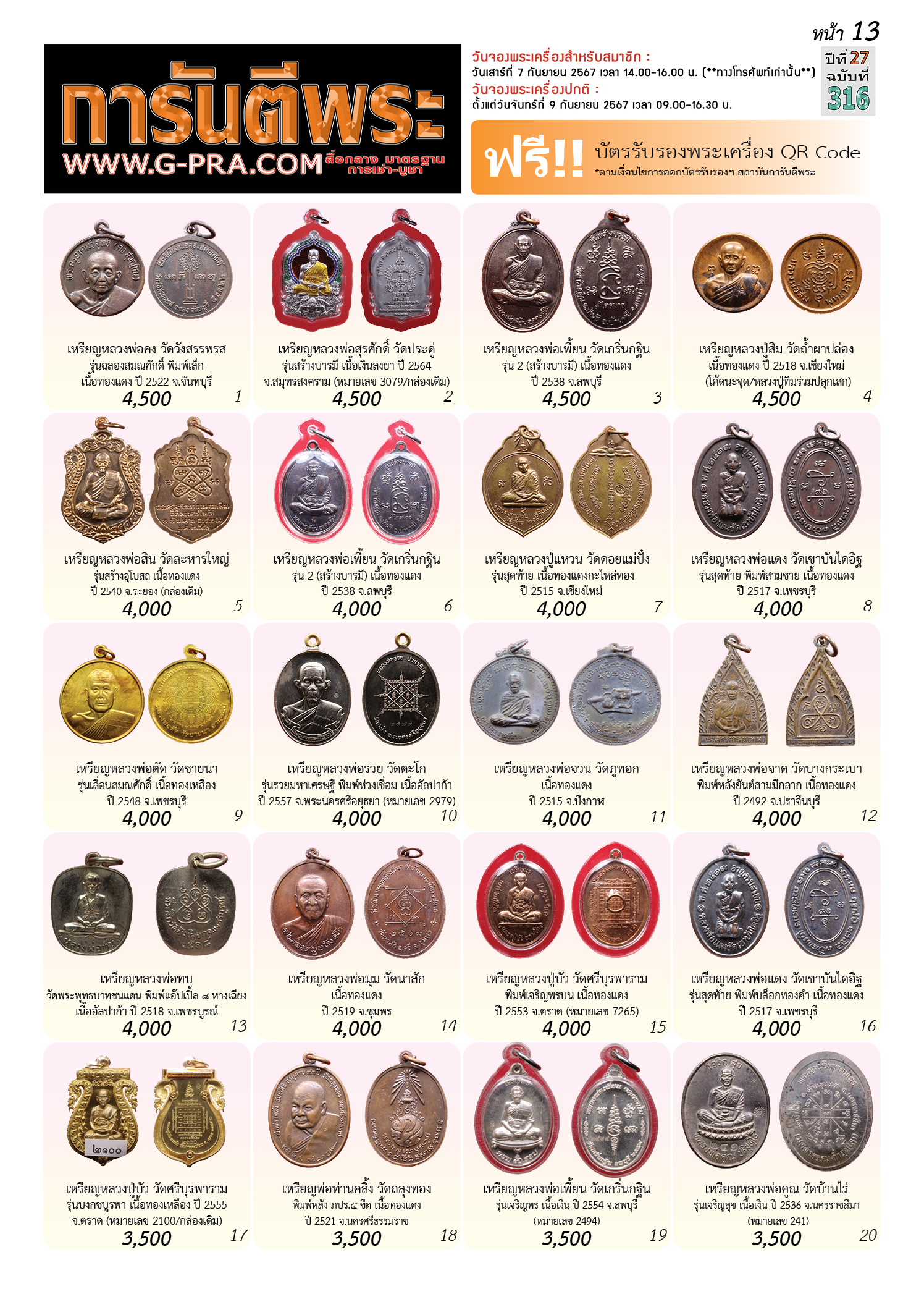 กรุณาเลือกเล่มนิตยสารการันตีพระ :