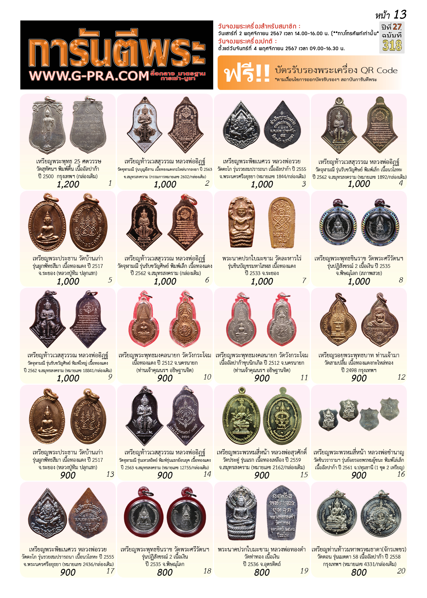 กรุณาเลือกเล่มนิตยสารการันตีพระ :