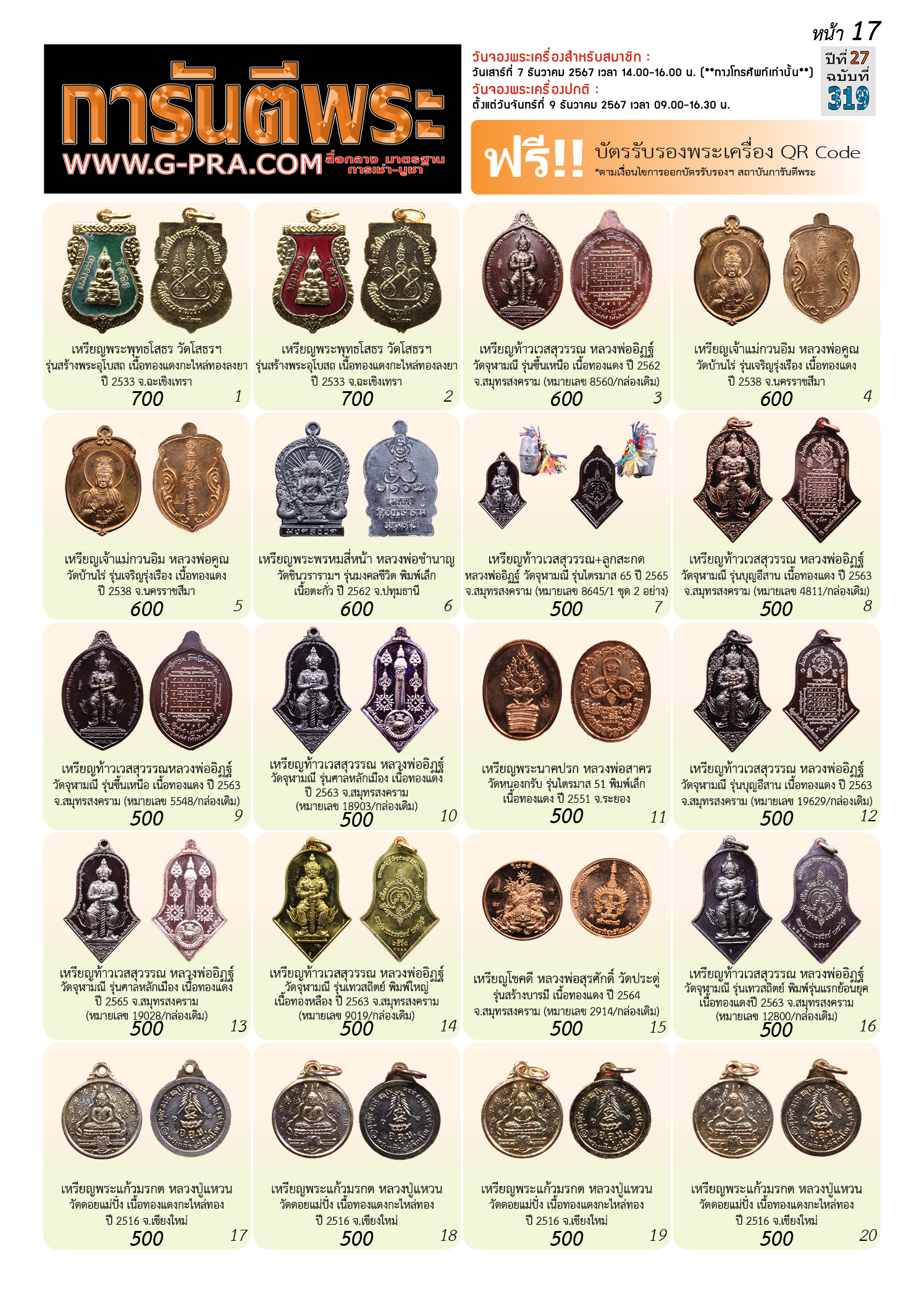 กรุณาเลือกเล่มนิตยสารการันตีพระ :