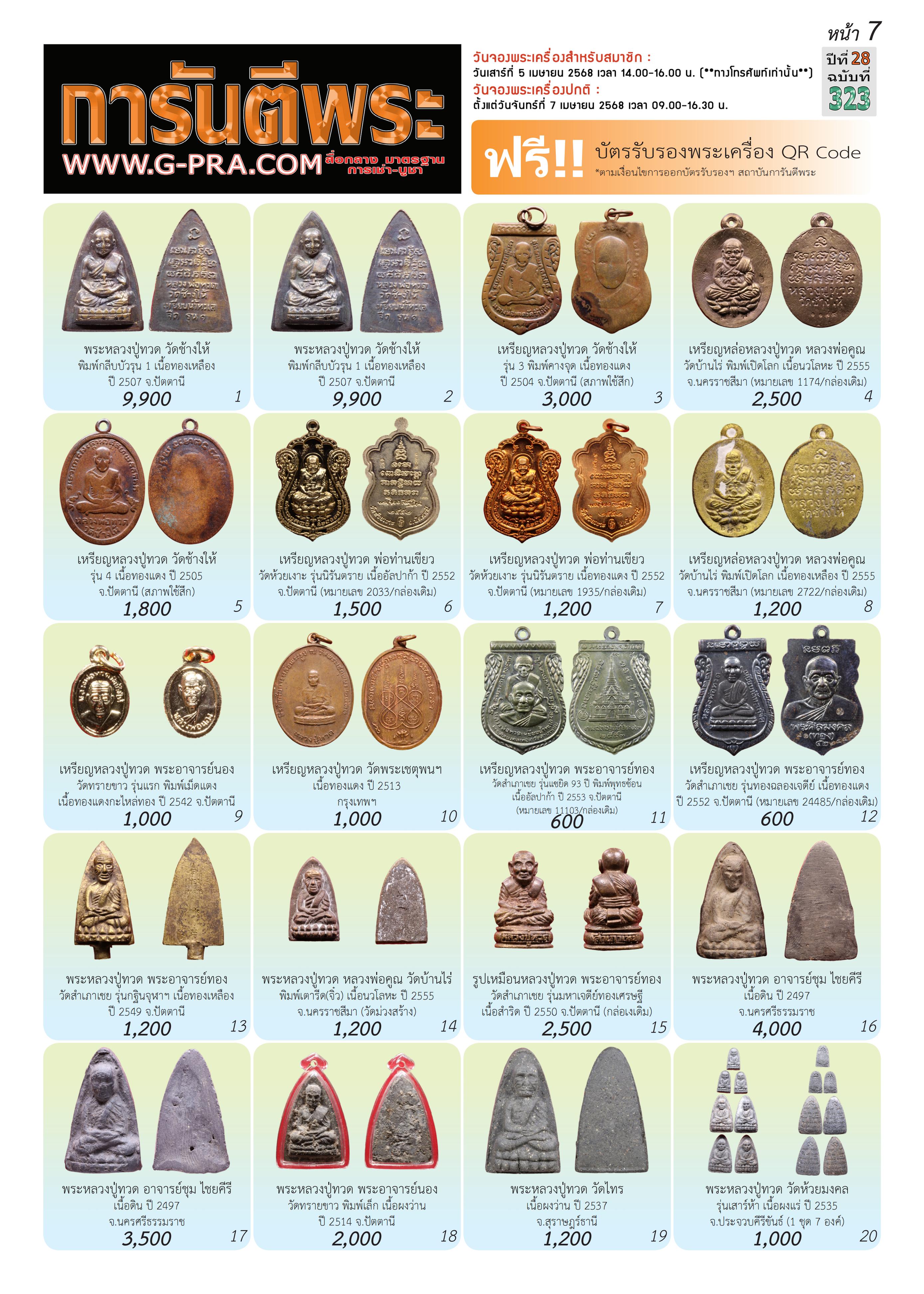 กรุณาเลือกเล่มนิตยสารการันตีพระ :
