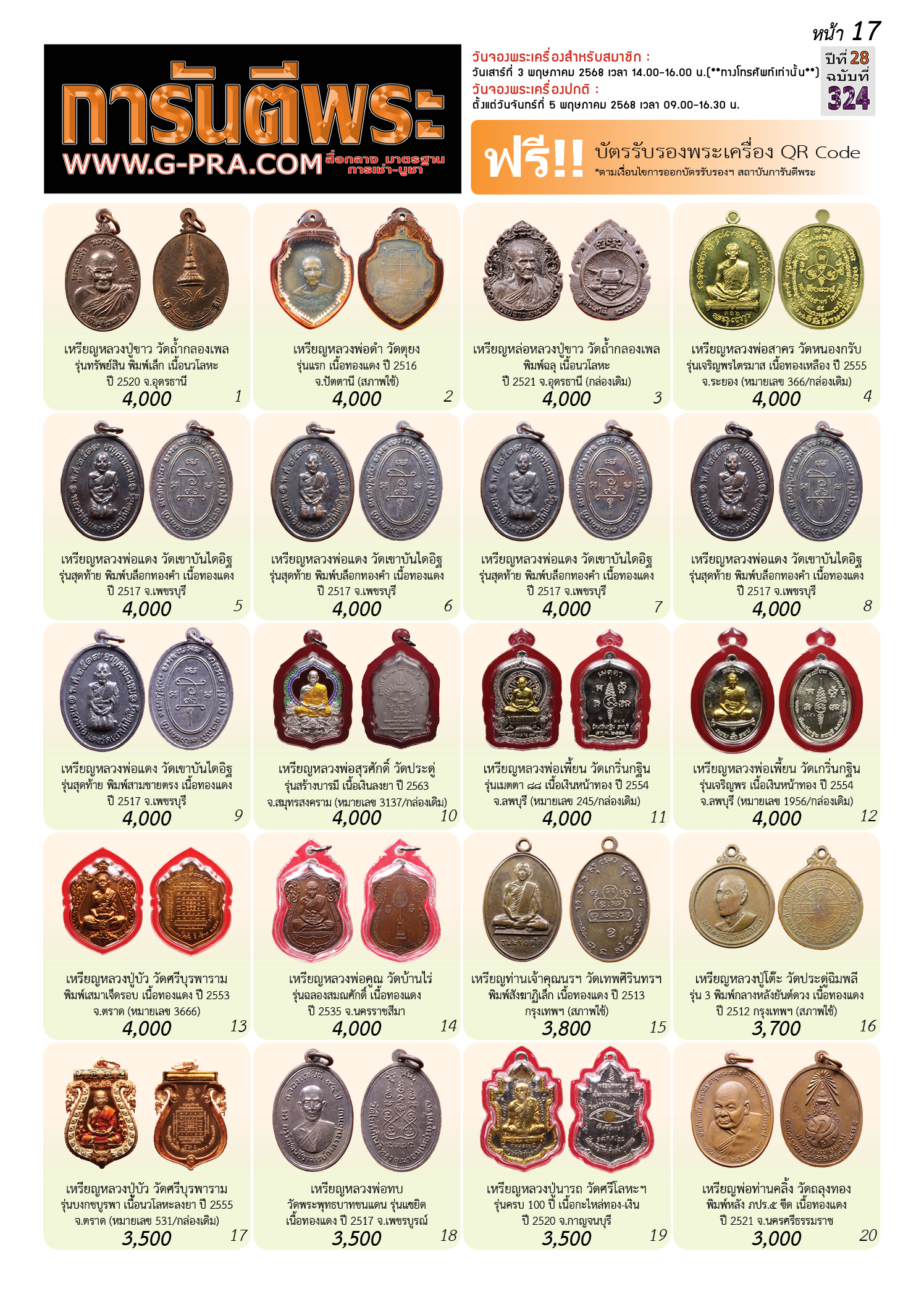 กรุณาเลือกเล่มนิตยสารการันตีพระ :