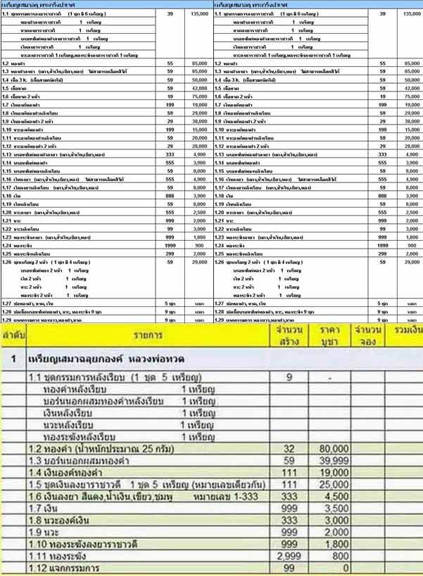 1.เหรียญเนื้อเงินองค์ทองคำ 1 เหรียญๆละ 25,000 บาท