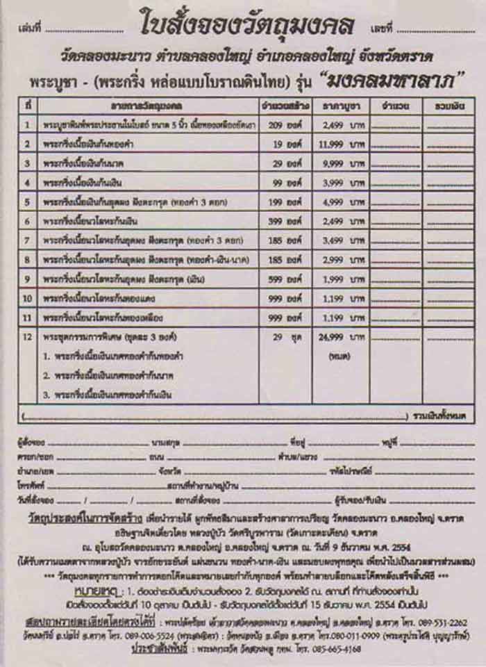 1 พระบูชาพิมพ์พระประธานในโบสถ์ ขนาด 5 นิ้ว เนื้อทองเหลืองขัดเงา บูชาองค์ละ 2,499 บาท มียอด 3 องค์